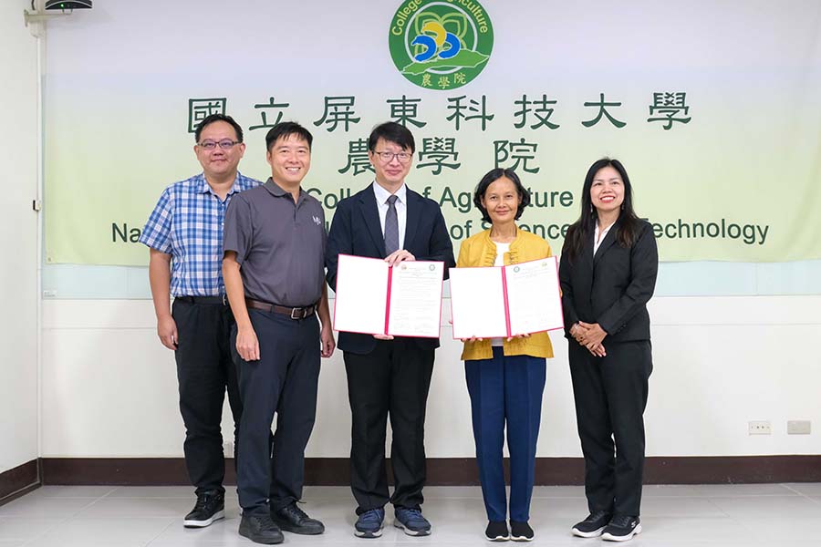 屏科大農學院於今(114)年8月15日與泰國湄州大學 (Maejo University) 農業生產學院正式簽署「師生學術合作交流協議」。儀式由農學院林宜賢院長與湄州大學農業生產學院 Theeranuch Jaroenkit 國際關係副院長共同主持,在包括科技農業進修學士學位學程蔡尚翰助理教授(兼任國際事務處國際交流組組長)、農園生產系江明豪助理教授,以及泰國湄州大學助理教授 Jutamas Piladee 博士等多位貴賓的見證下完成簽署,為雙方未來的深度合作揭開序幕,強化兩院師生的學術交流與實務合作,在互惠原則的基礎上達成共識,承諾將共同推動教師互訪、學生交換、共同研究及學術資源共享等多面向的合作計畫。