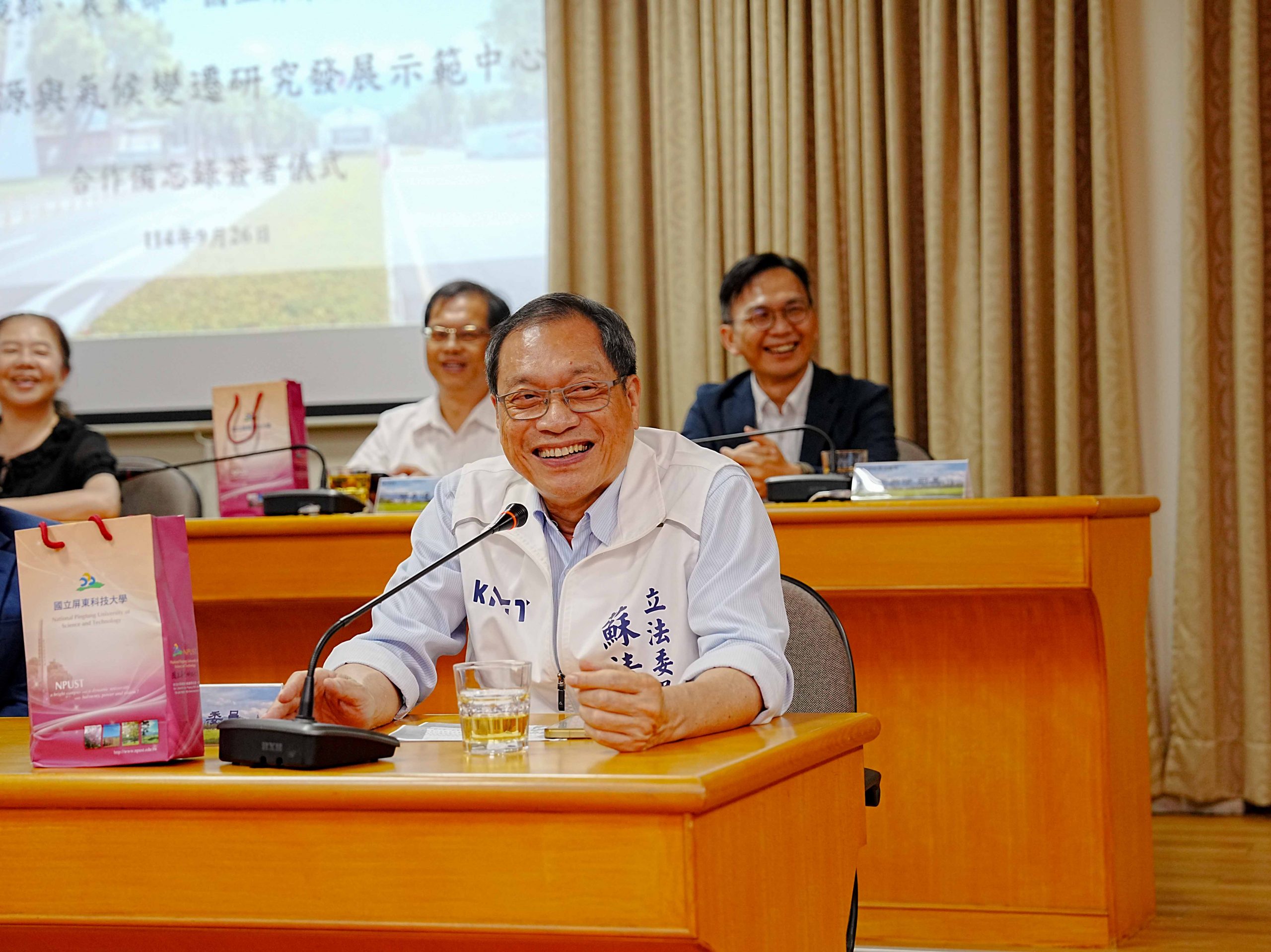 屏科大張金龍校長表示,今日與環境部、農業部共同簽署「永續能源與氣候變遷研究發展示範中心」合作備忘錄,象徵產、官、學、研攜手合作,齊力邁向臺灣農業淨零轉型與循環經濟發展的重要一步。屏科大以農立校,深耕智慧農業、綠色能源與環境永續,未來示範中心將透過技術研發與教育實踐,建構一個集研究、示範與推廣功能於一體的創新平台。