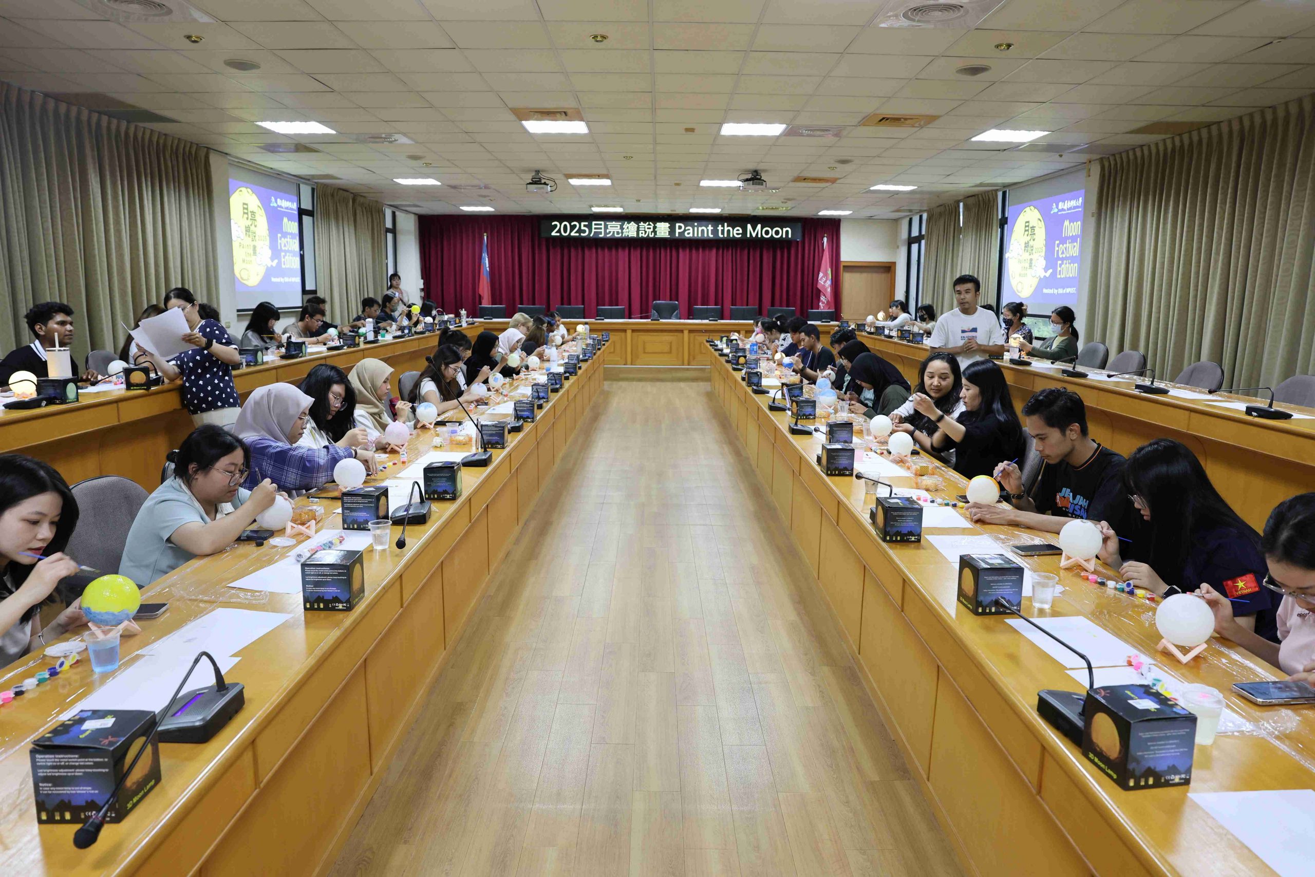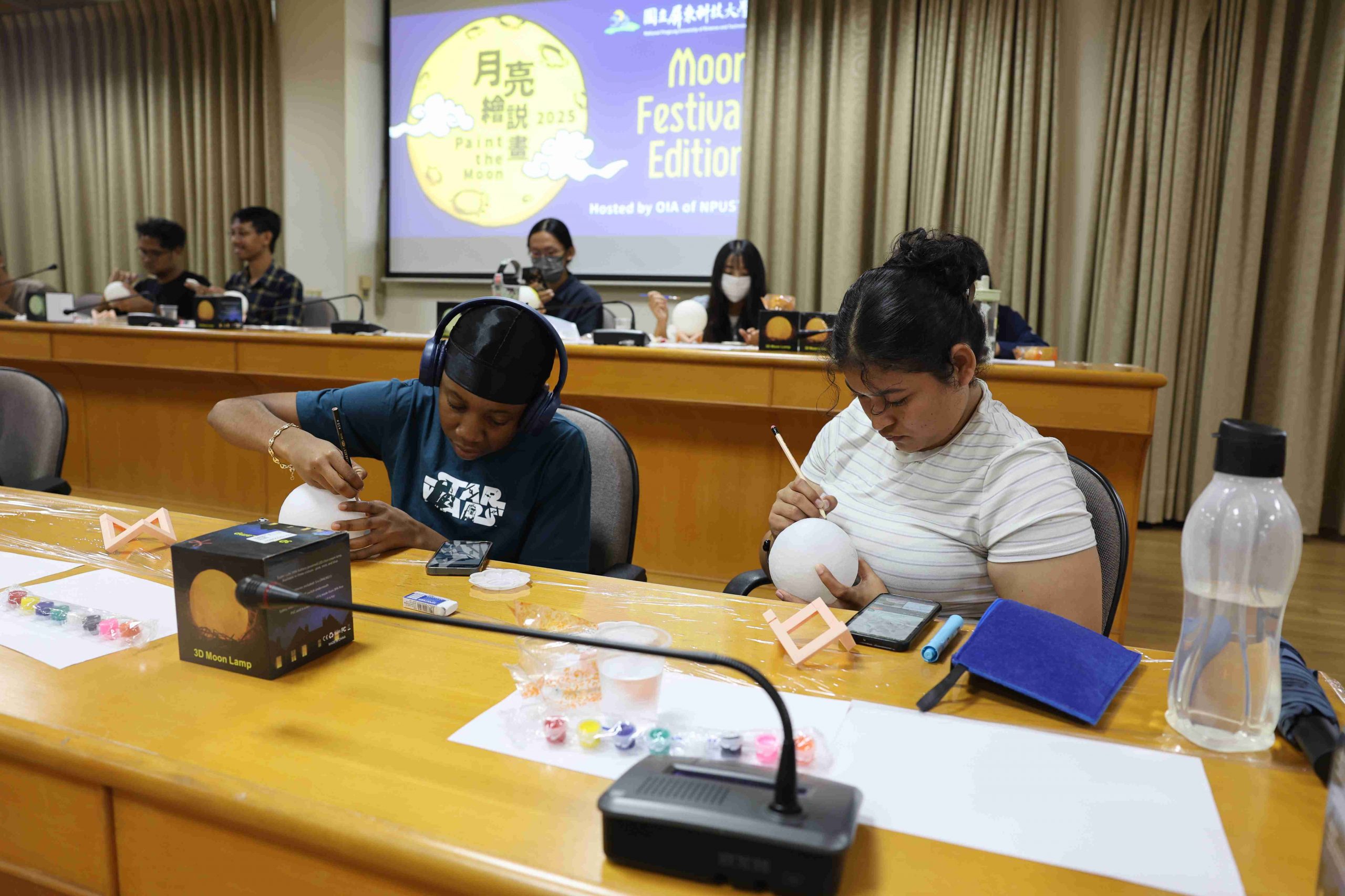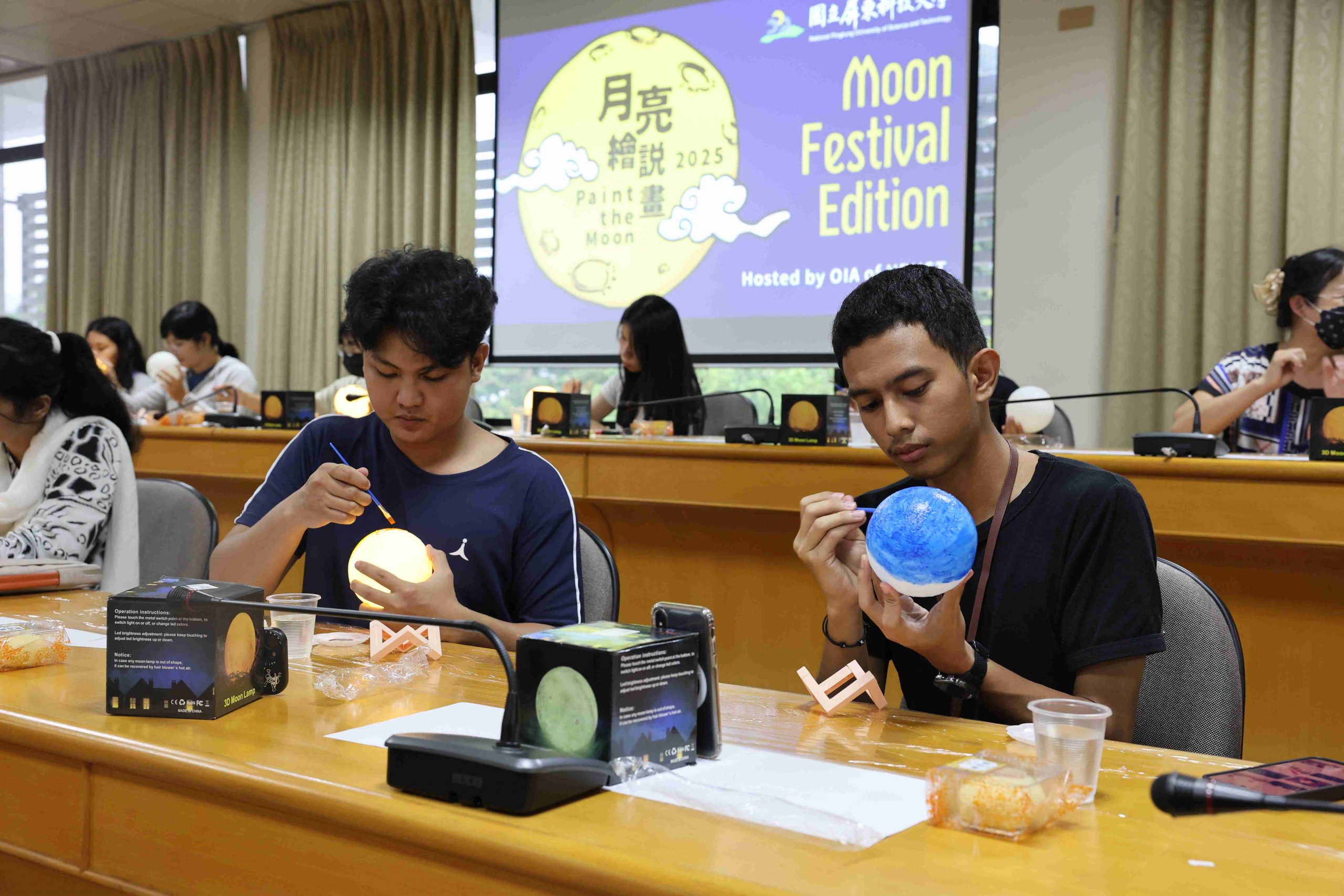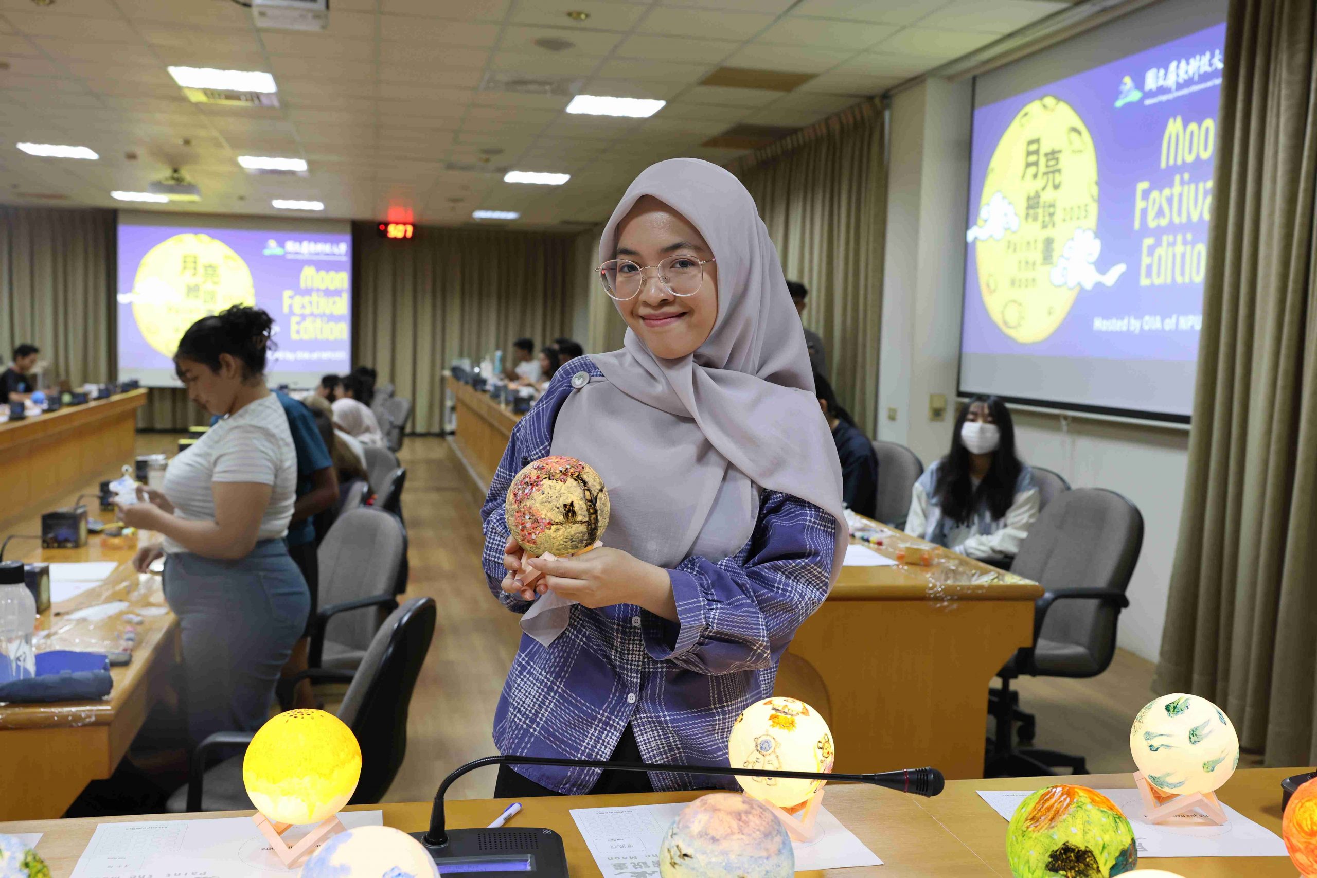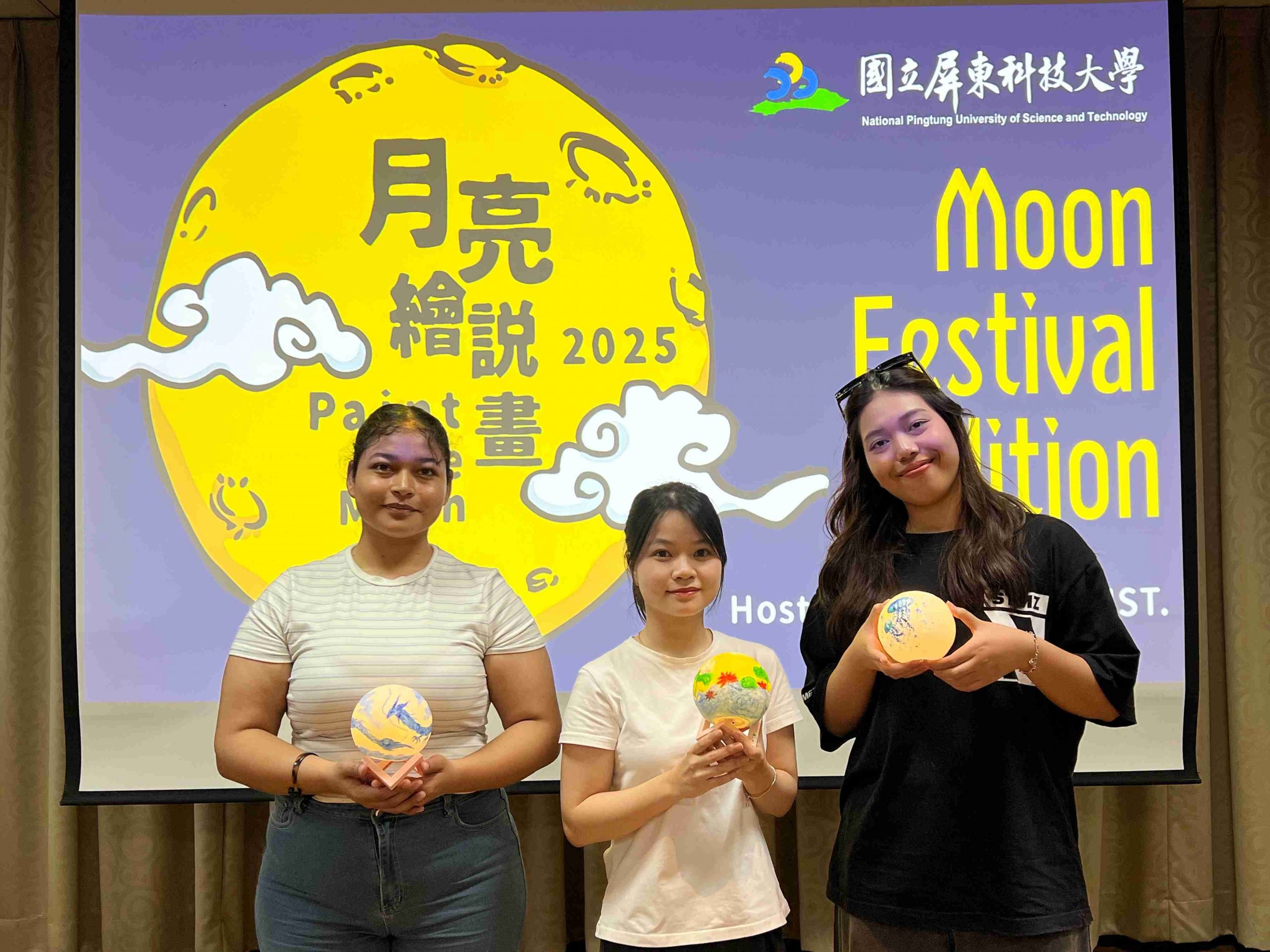 參與者們在了解中秋背景故事後,開始發揮創意,各自於純白的月球燈上描繪繽紛圖案與寓意。有同學靈感大發,將蛋黃酥配色融入設計,創作出具濃厚節慶特色的「蛋黃酥燈」。在活動最後的「人氣獎」投票,由熱農系貝里斯籍的頁米拉同學(Marcie Galicia)榮獲第一名,新南向菁英培育專班泰國籍丹雅蓉同學(Thanyaporn Detchang)獲得第二名,食品系碩士班越南籍黎氏娥同學(Le Thi Nga)則榮獲第三名。三位優勝者的作品展現藝術創意,也表達出對中秋的獨特詮釋。