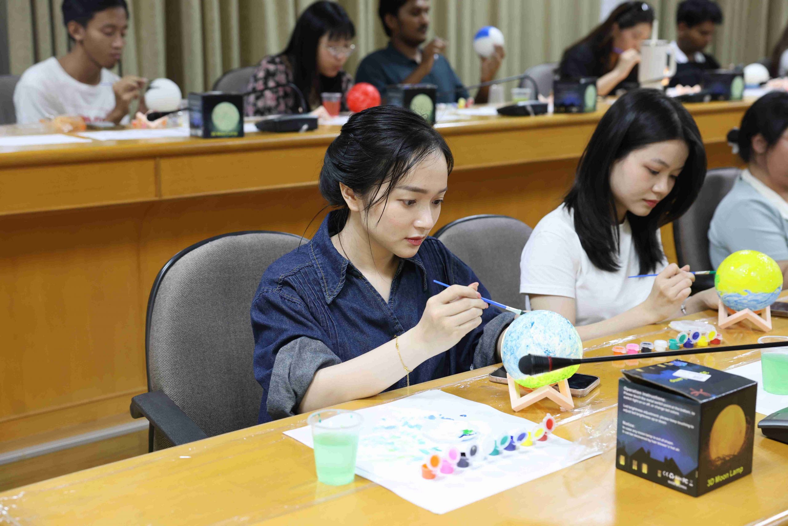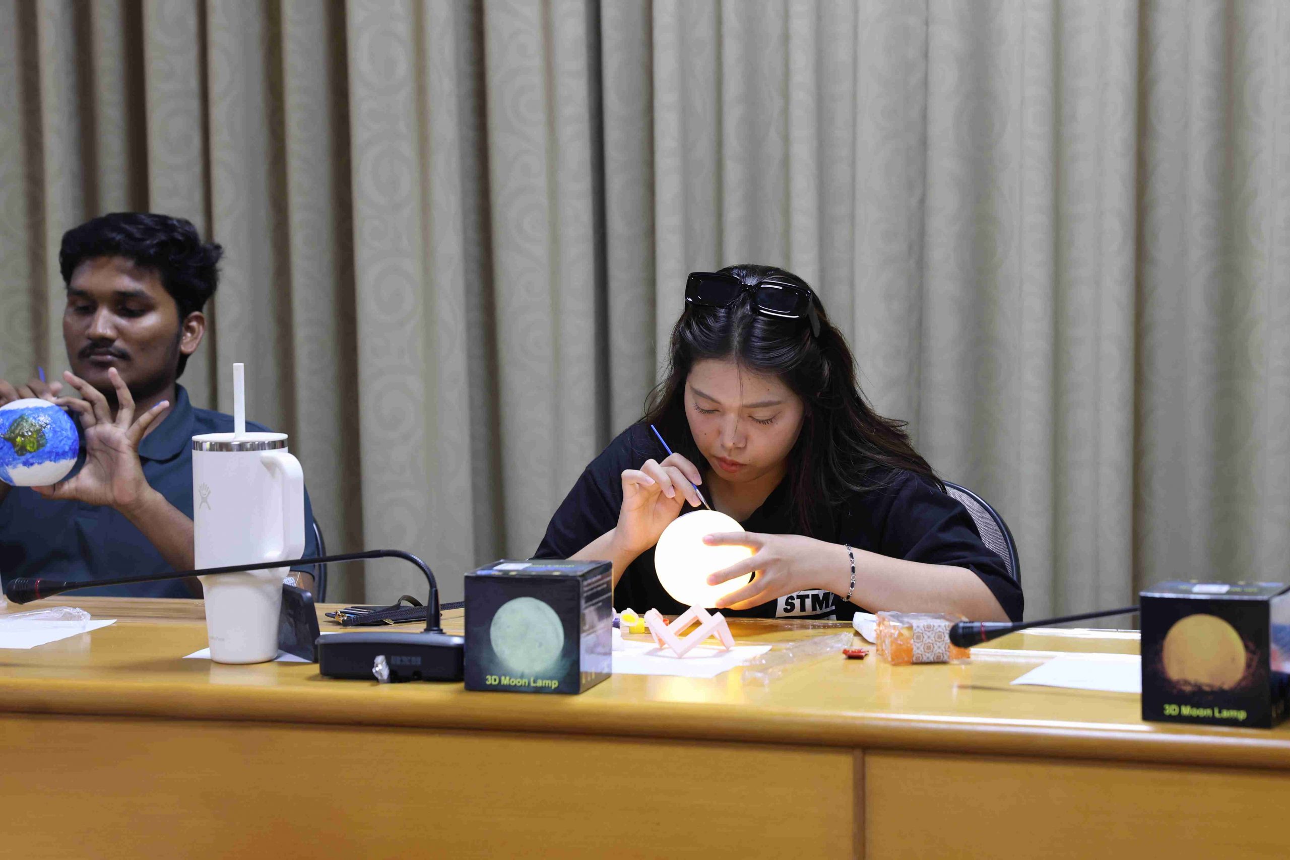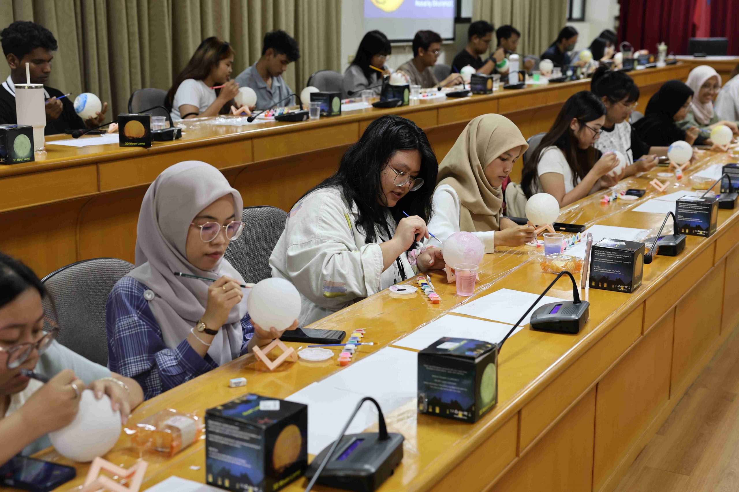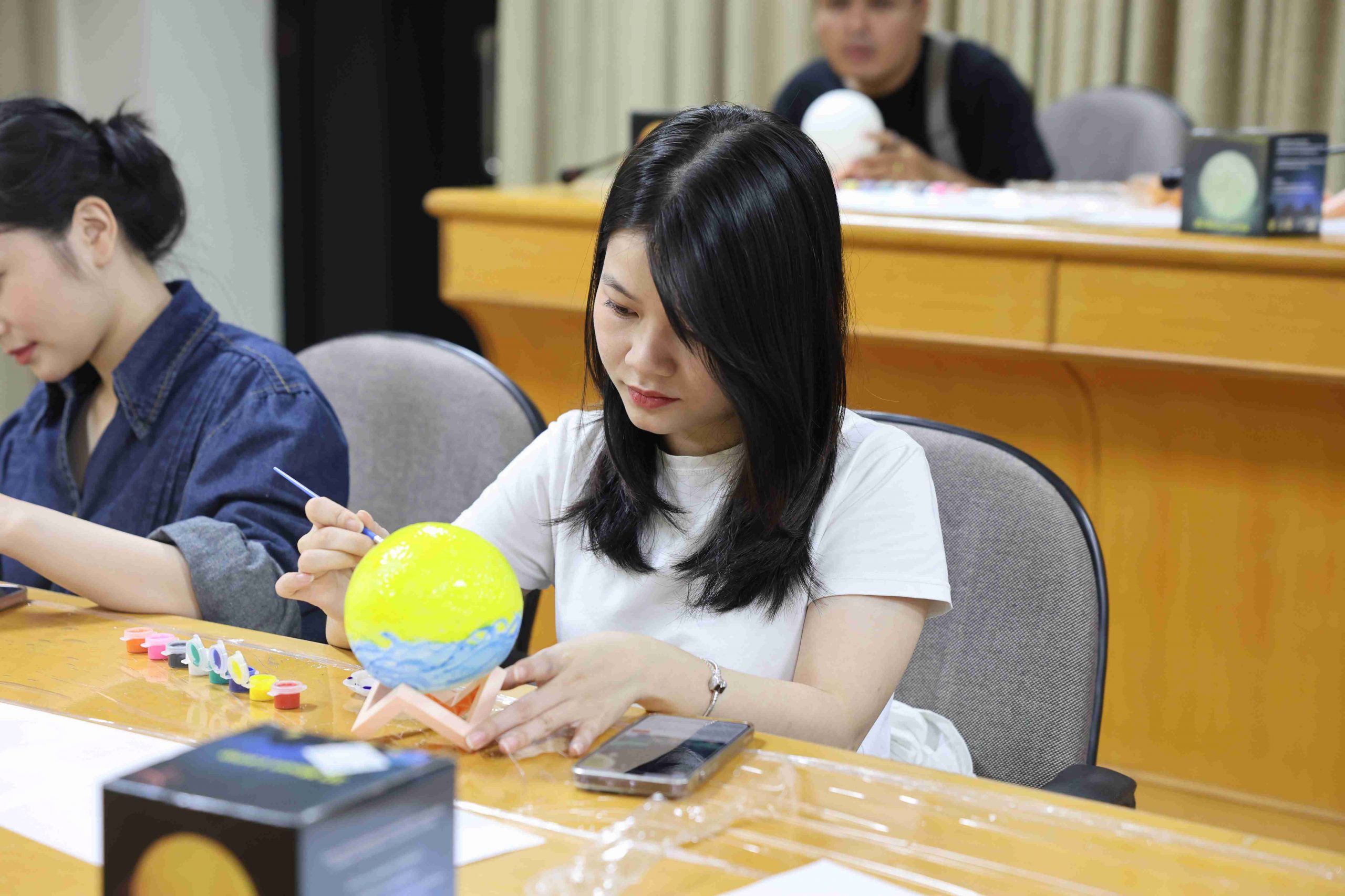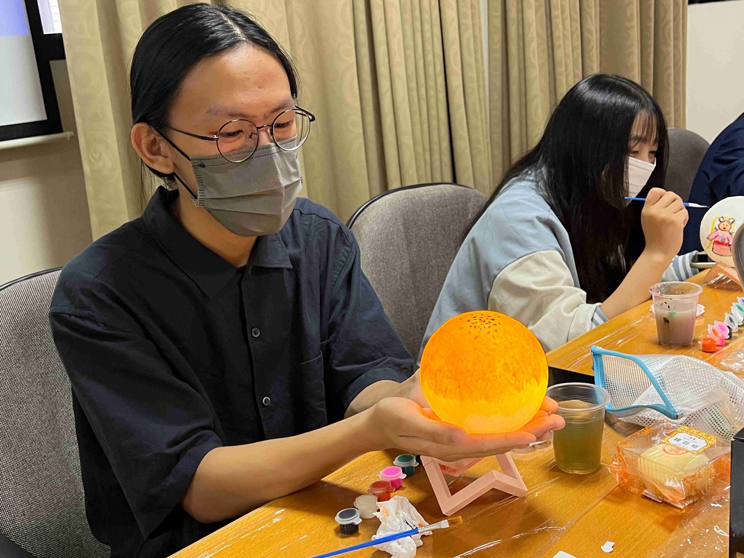 參與者們在了解中秋背景故事後,開始發揮創意,各自於純白的月球燈上描繪繽紛圖案與寓意。有同學靈感大發,將蛋黃酥配色融入設計,創作出具濃厚節慶特色的「蛋黃酥燈」。在活動最後的「人氣獎」投票,由熱農系貝里斯籍的頁米拉同學(Marcie Galicia)榮獲第一名,新南向菁英培育專班泰國籍丹雅蓉同學(Thanyaporn Detchang)獲得第二名,食品系碩士班越南籍黎氏娥同學(Le Thi Nga)則榮獲第三名。三位優勝者的作品展現藝術創意,也表達出對中秋的獨特詮釋。