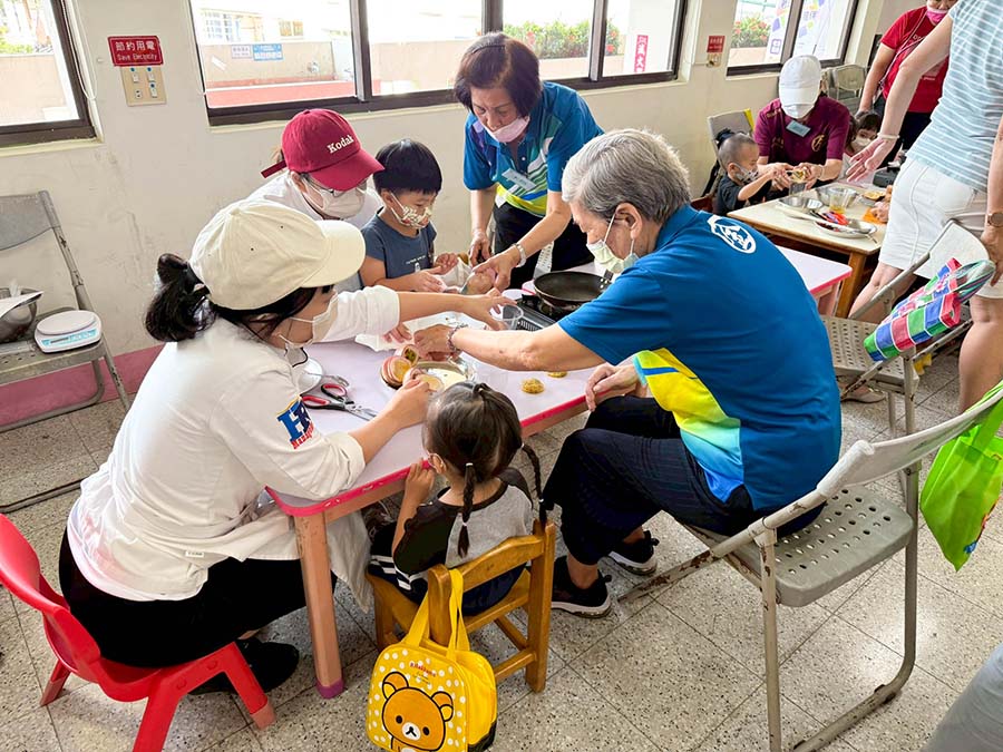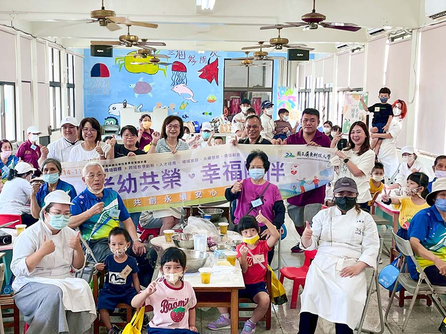 國立屏東科技大學「老幼共榮、幸福陪伴-共創永續安心家園」USR團隊與萬金社區發展協會及赤山國小附設幼兒園,於10月9日在萬巒鄉赤山國小舉辦「綠色餐桌」活動,邀請萬金社區長輩及赤山國小附幼的學童共同參與。現場由餐旅管理系施慧雯老師帶領師生團隊帶領,引導長輩與小朋友親手製作火龍果優格杯、卡士達銅鑼燒及蜂蜜檸檬百香果汁等甜點飲品,運用屏東在地食材創造出低碳美味,營造跨世代共學、共樂的溫馨場景。