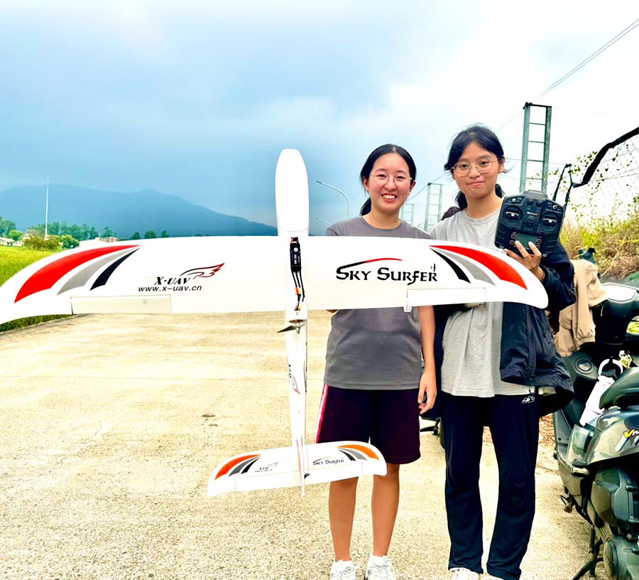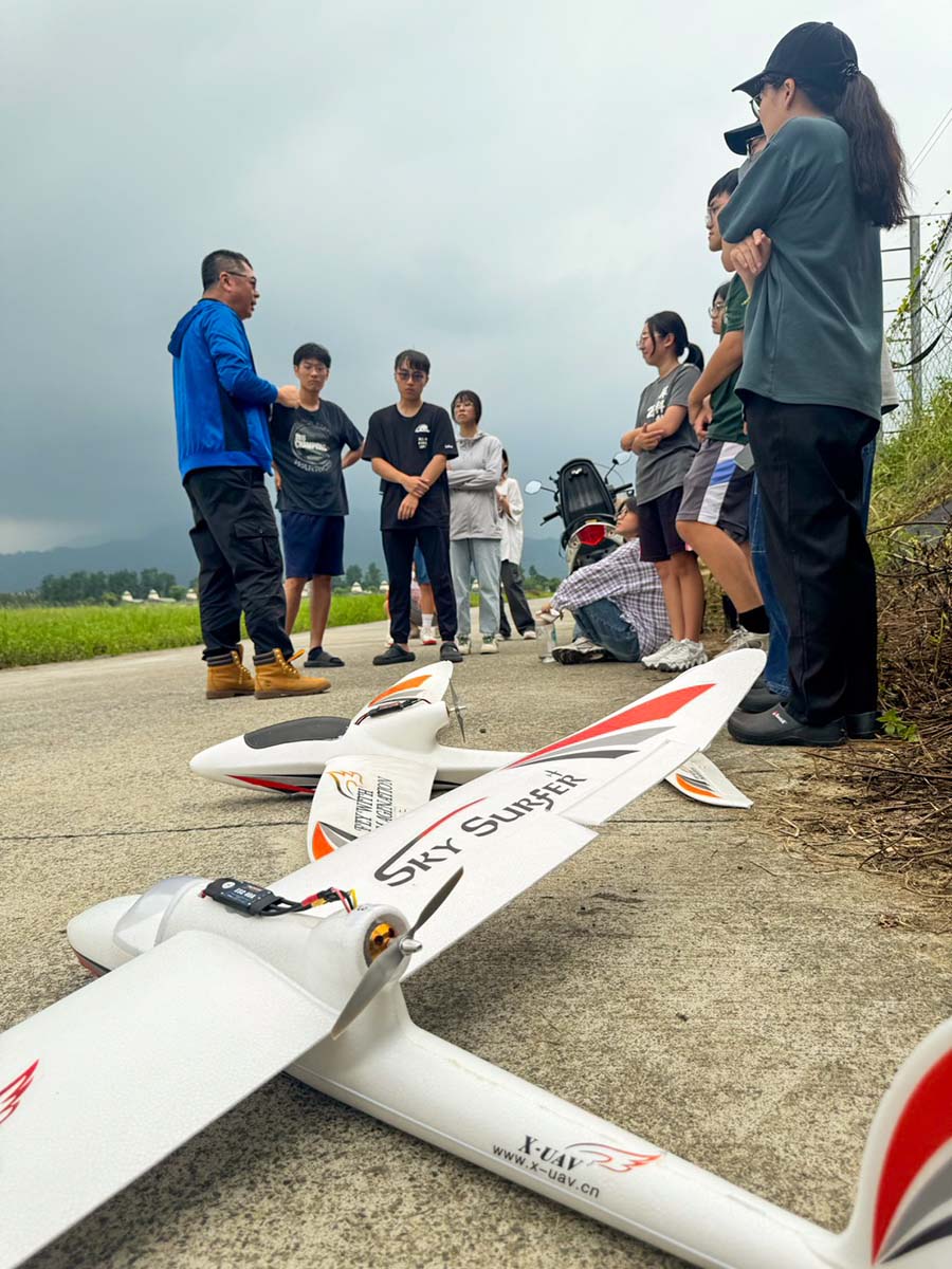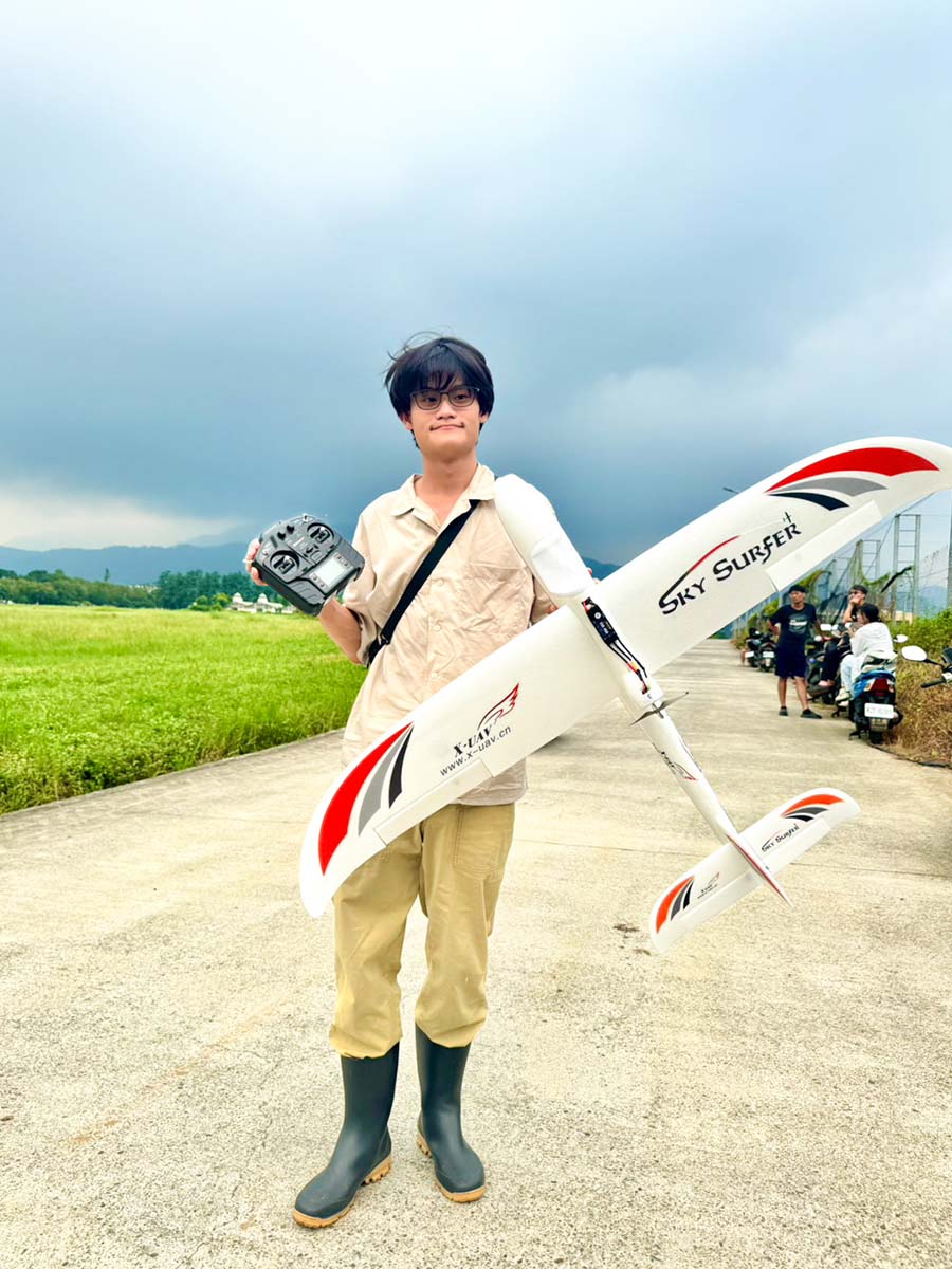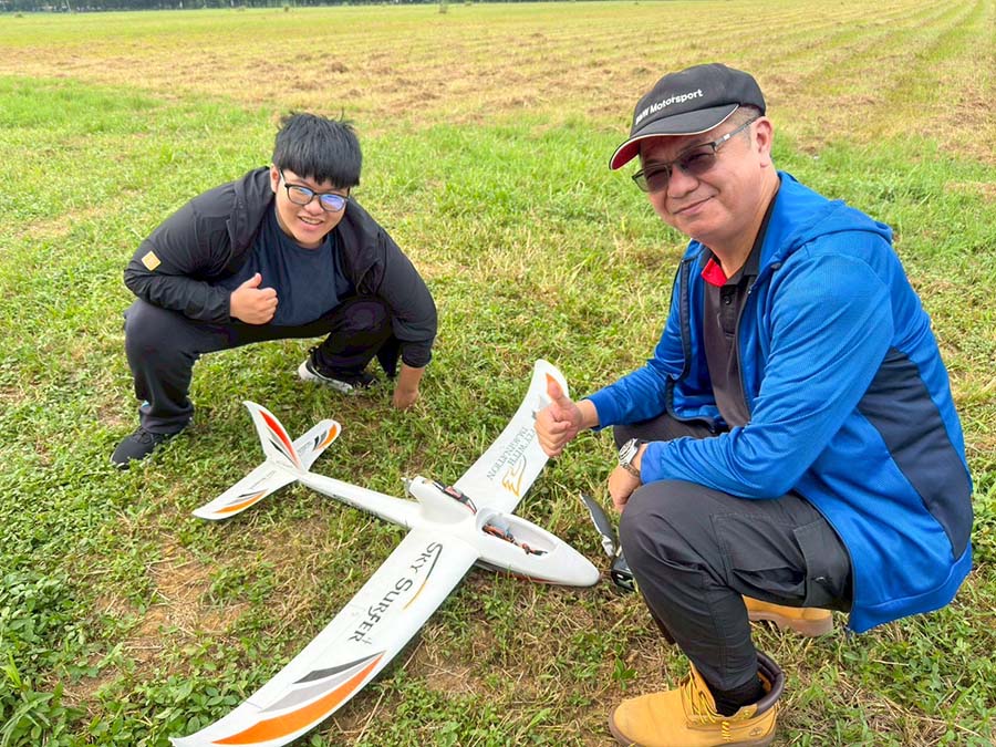 計畫主持人智慧機電學士學位學程徐子圭教授表示,「無人機飛行實務」課程規劃多元,涵蓋多旋翼型與定翼型無人機兩大主題,透過分階段教學讓學生循序漸進地掌握各類飛行器的特性、構造與操控方式。本週課程進入重點實作階段,學生實地進行定翼機戶外飛行訓練,以「衝浪者(Surfer)動力滑翔機」作為入門訓練機種,在專業教師與教練指導下分批上場操作,親身體驗飛行的速度感與穩定性。