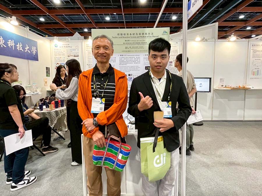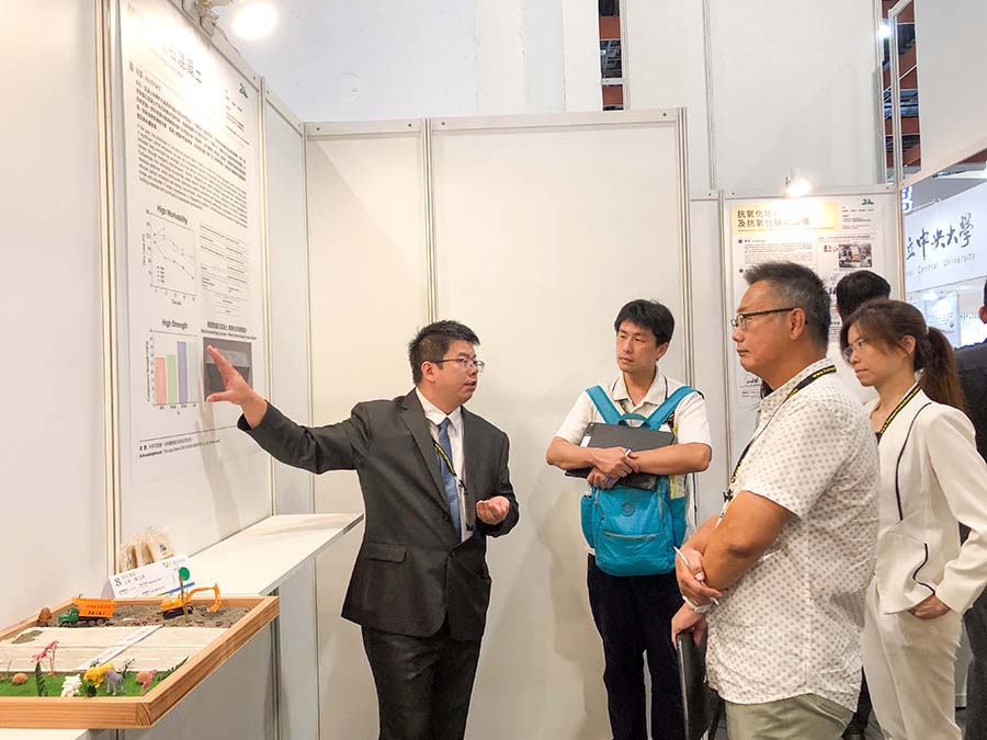 除競賽成果外,屏科大亦展出多項具永續發展潛力的技術,展現研發實力與創新能量。其中由土木系蔡嘉榮副教授的「鹼激發爐石混凝土」透過使用工業廢料-爐石與廢水玻璃鑄造砂替代傳統水泥原料,顯著降低碳排放與能源消耗,同時保持與傳統砂漿、混凝土相當的性能表現,有助於綠色低碳建材的發展與普及。以及生物機電工程系陳志堅教授帶來「核酸檢測系統及其使用方法」結合濾紙材料與相變化物質實現核酸樣本的自動處理與穩定反應。系統整合樣本前處理、核酸擴增與比色顯色三大功能,30分鐘內即可完成檢測,搭配Wi-Fi無線傳輸與致冷晶片,能即時顯示檢測結果。此展出亦吸引泰國Montfort College師生前來參觀,期望藉此拓展國際合作與交流,共同培育具全球競爭力的生技人才。