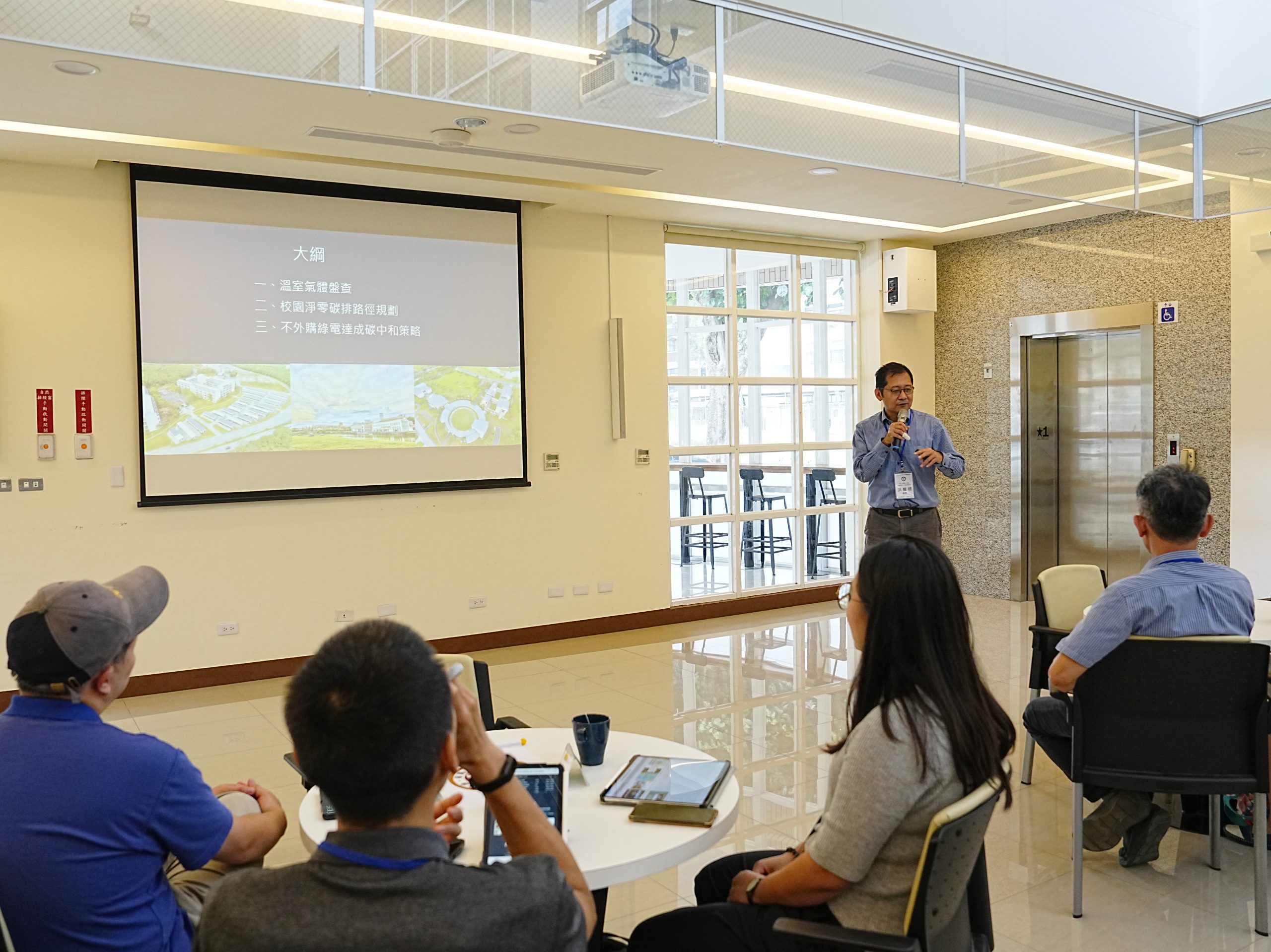 下午行程規劃「議題分享」與「交流會報告」兩大主軸,其中「議題分享」以「節能管理」與「生物多樣性」為主題,前者由國立東華大學永續發展中心洪耀明組長與國立臺灣科技大學營繕組張韻慈組長分享學校的節能實務經驗,探討校園能源管理與永續設施改進之具體作法;後者邀請國立臺灣大學永續辦公室王曉朗專任助理及國立中央大學永續發展暨社會責任辦公室吳忻怡組長探討生態多樣性守護策略,分享校園生態維護與物種多樣性推動的策略與成果。
