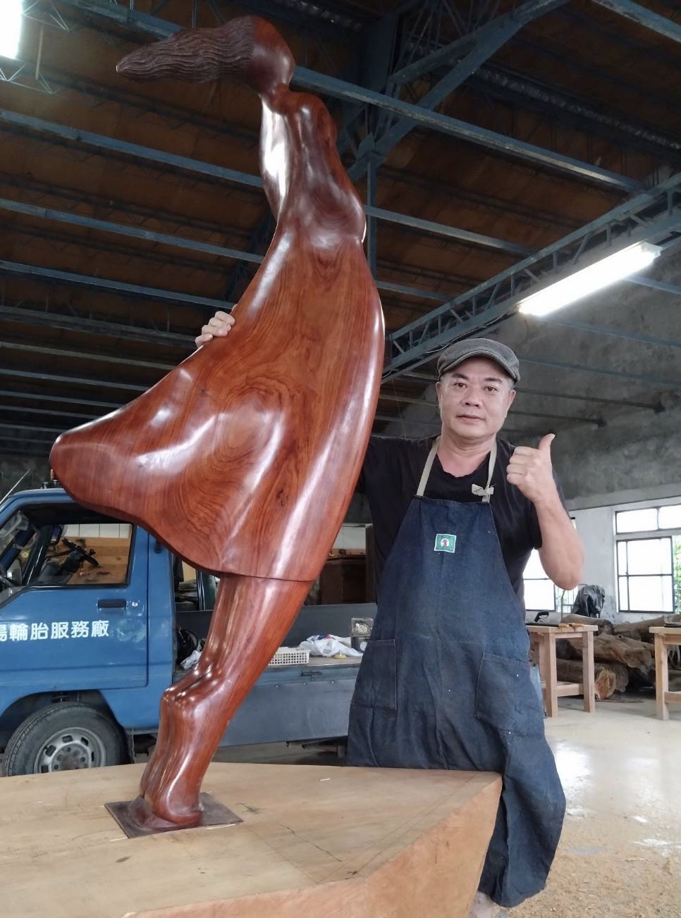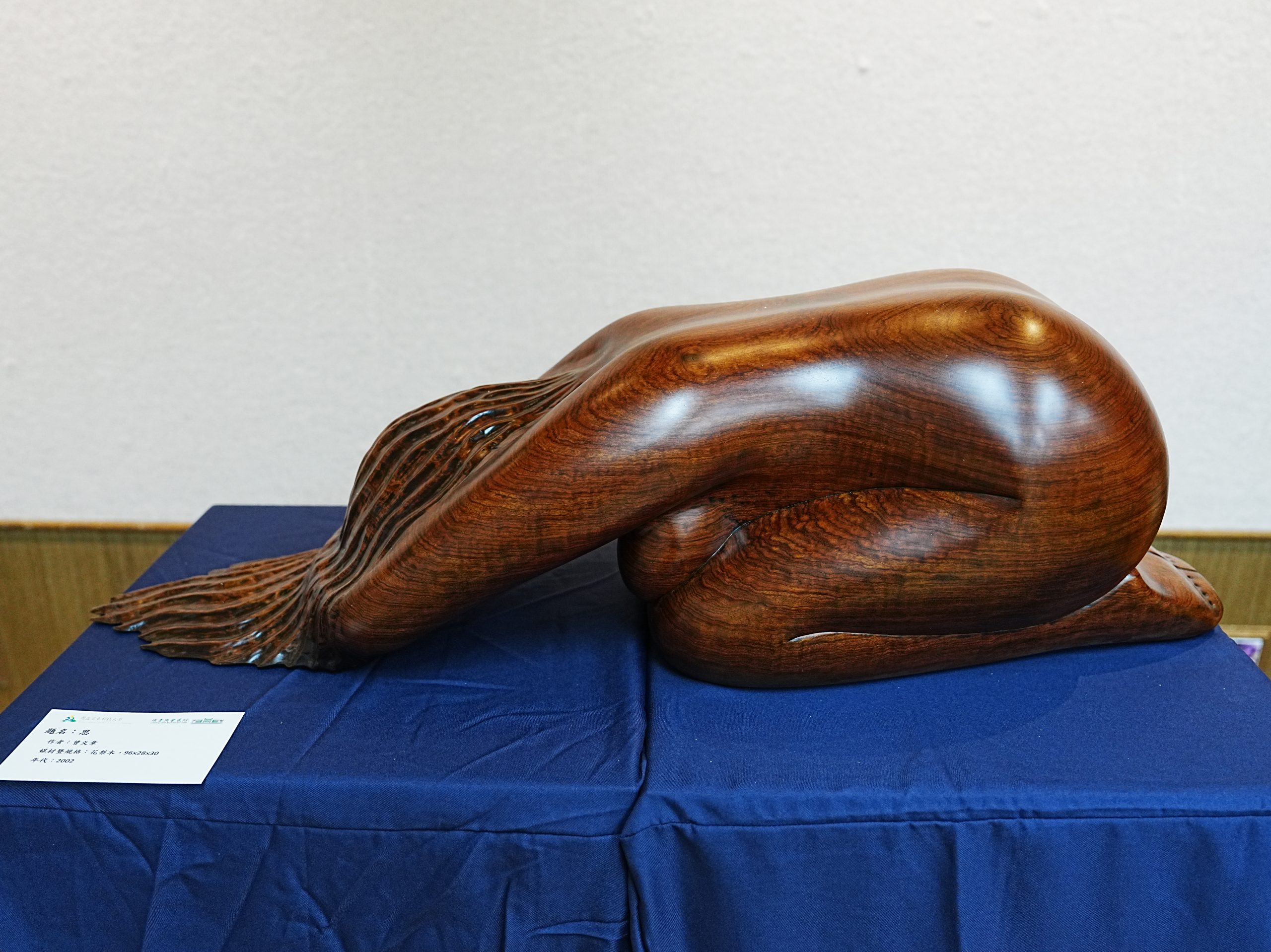 曾文章老師在雕刻創作極為重視材質肌理,使用質地堅硬的花梨木、緬甸柚木創作時,以細磨拋光及電鋸、鑿刀做塊面或點狀處理,曾老師形容:「石雕創作像是爬天橋,先苦後甘;木雕創作好比走地下道,先甘後苦。」其創作如同人生經歷百轉千折,創作能量源源不絕。透過本次展覽,民眾可欣賞其作品造型簡約、洗練、俐落、流暢、介於寫實與抽象之間,尤其掌握女體婀娜多姿、豐腴優美的曲線,傳達豐富情感及安穩沉靜之感。