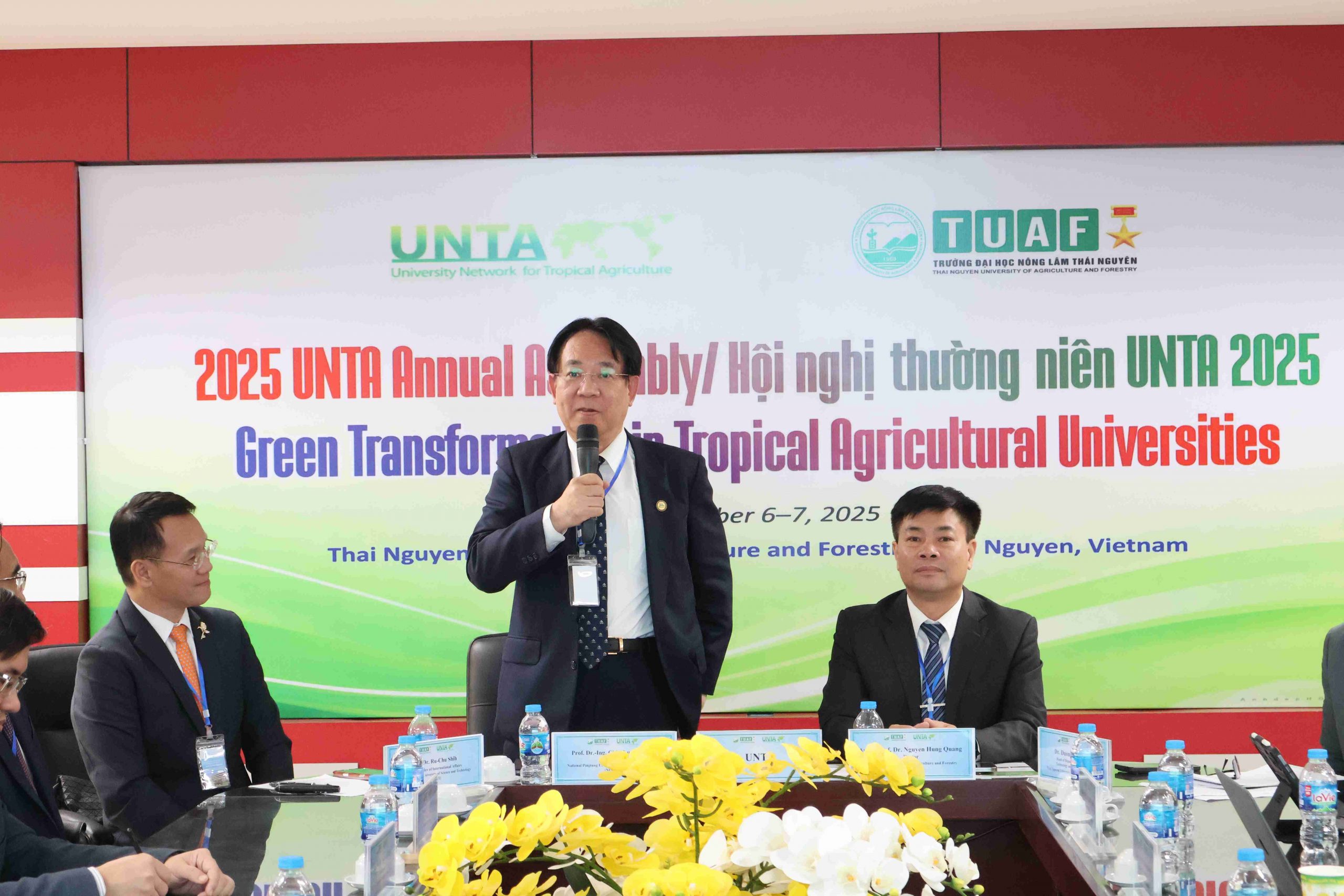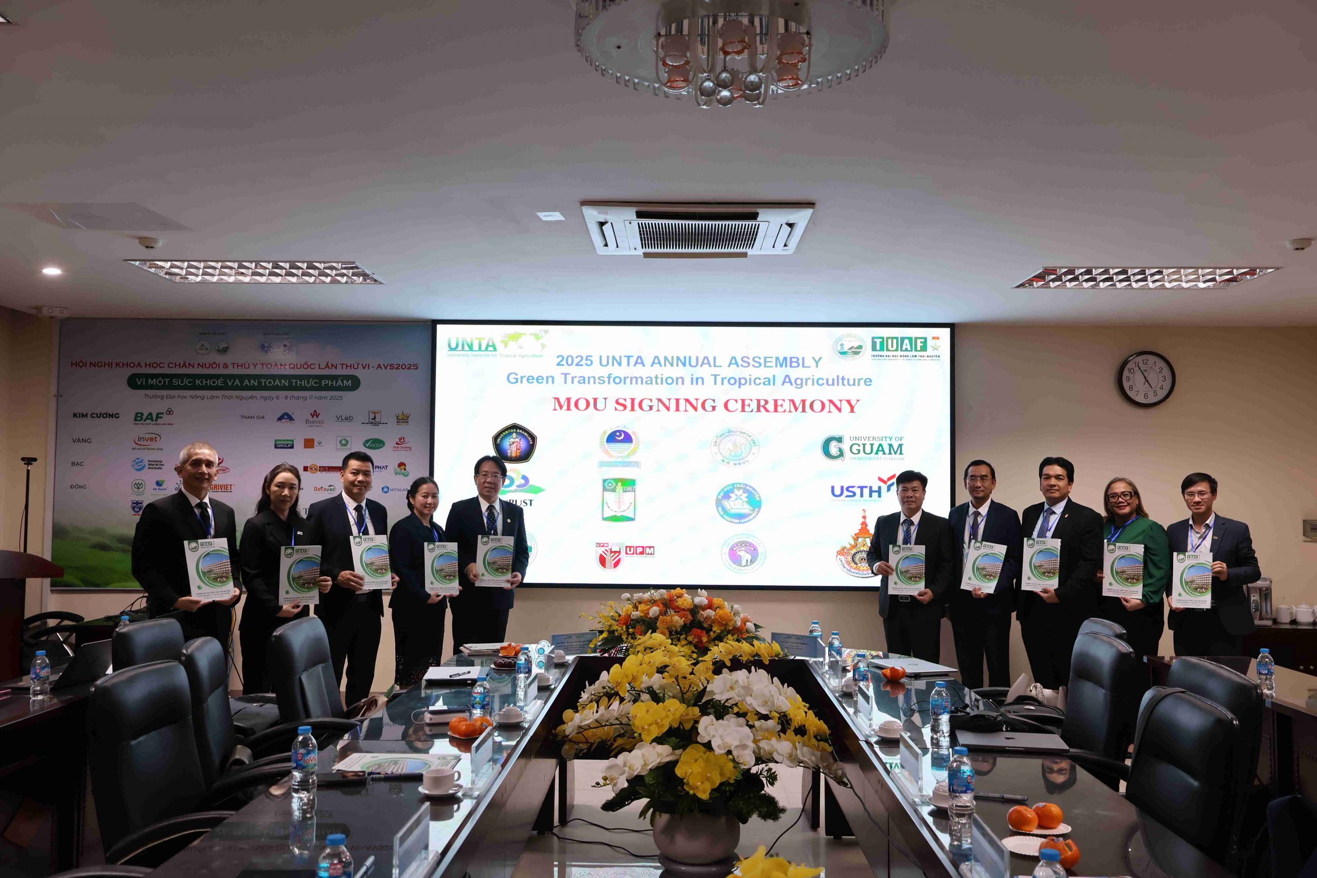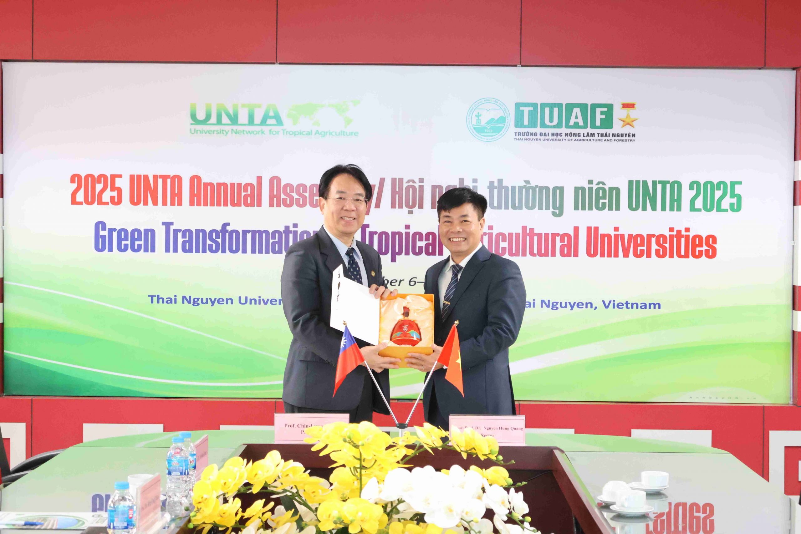 11月6日至7日我校張金龍校長與石儒居國際長出席「2025年熱帶農業大學聯盟(UNTA)年會」及越南太原農林第六屆全國動物與獸醫科學研討會。本校為熱帶農業大學聯盟(University Network for Tropical Agriculture, UNTA)之永久秘書處,協助聯盟交流與推動年度合作。今年UNTA 年會由太原農林大學主辦,以「熱帶農業大學的綠色轉型(Green Transformation in Tropical Agricultural Universities)」為主題,邀集來自越南、泰國、印尼、印度、馬來西亞、美國關島及台灣等會員學校代表透過實體及線上方式參與。