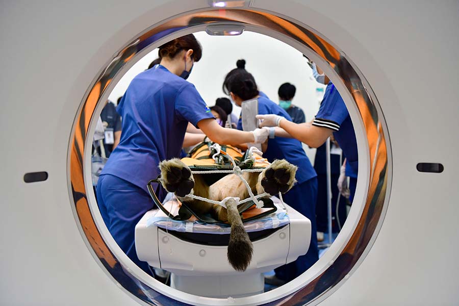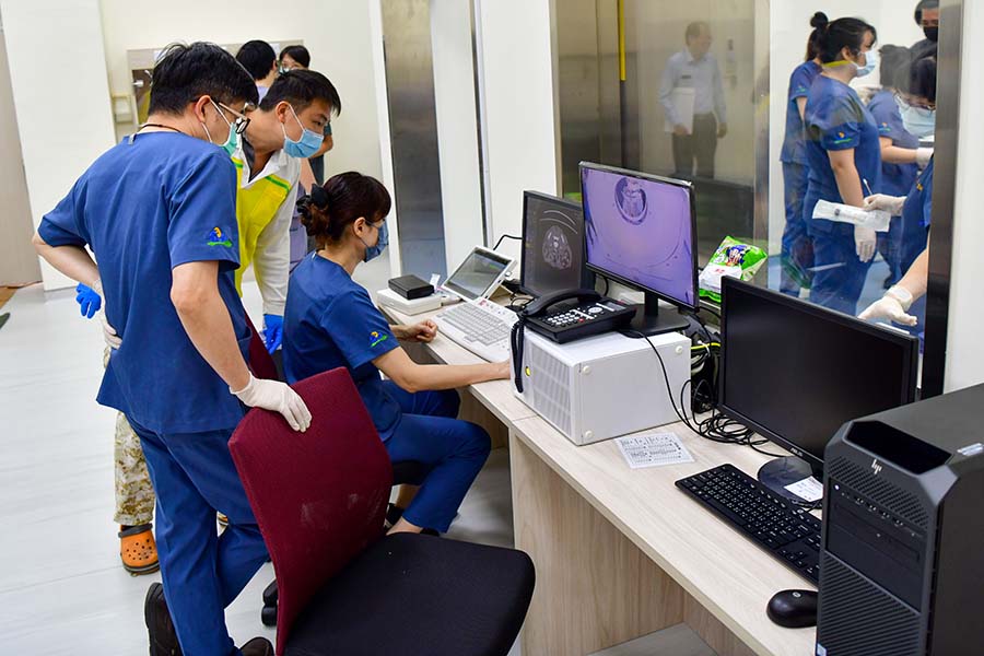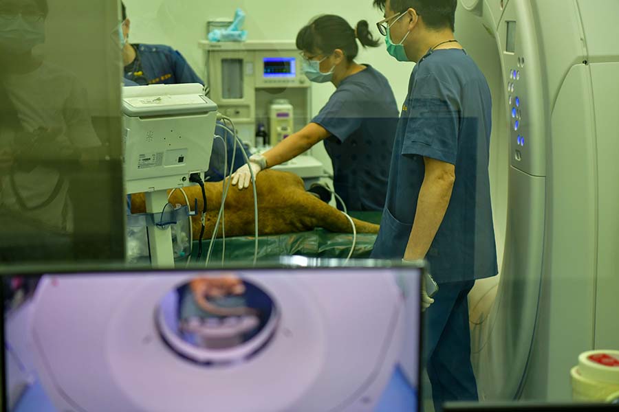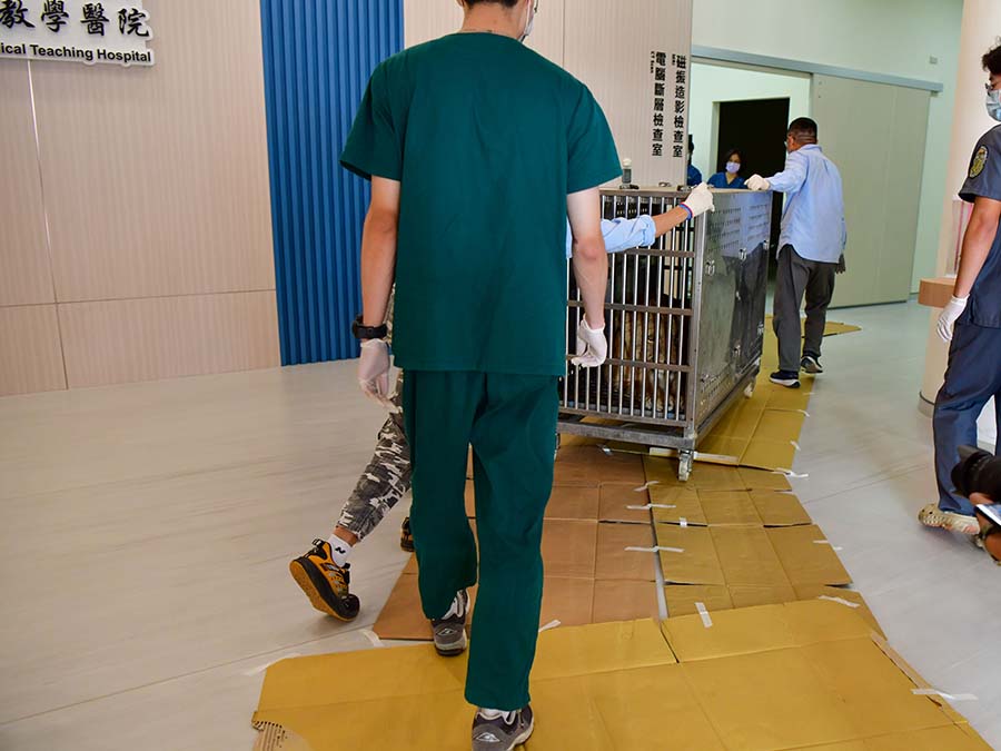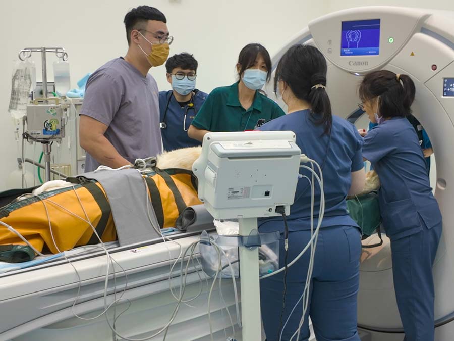 此次檢查使用屏科大附設獸醫教學醫院全新購置啟用的160切電腦斷層掃描儀,此為國內獸醫界唯一床台承重可達300公斤之設備,屬於目前台灣少見可支援大型動物檢查的高階影像設備。同時也率先導入AI智能影像技術,可因應不同動物體型獲得最佳影像品質。檢查時亦同步進行血液檢查與健康評估,以確認動物整體健康狀態。整個過程由屏科大獸醫教學醫院醫療團隊共14位小動物外科、影像科獸醫師、8位獸醫學系學生與壽山動物園獸醫師事前詳細規劃動線和人員分工,確保運送、麻醉與檢查流程順利進行,獅子於檢查後順利甦醒並返回園區持續觀察。