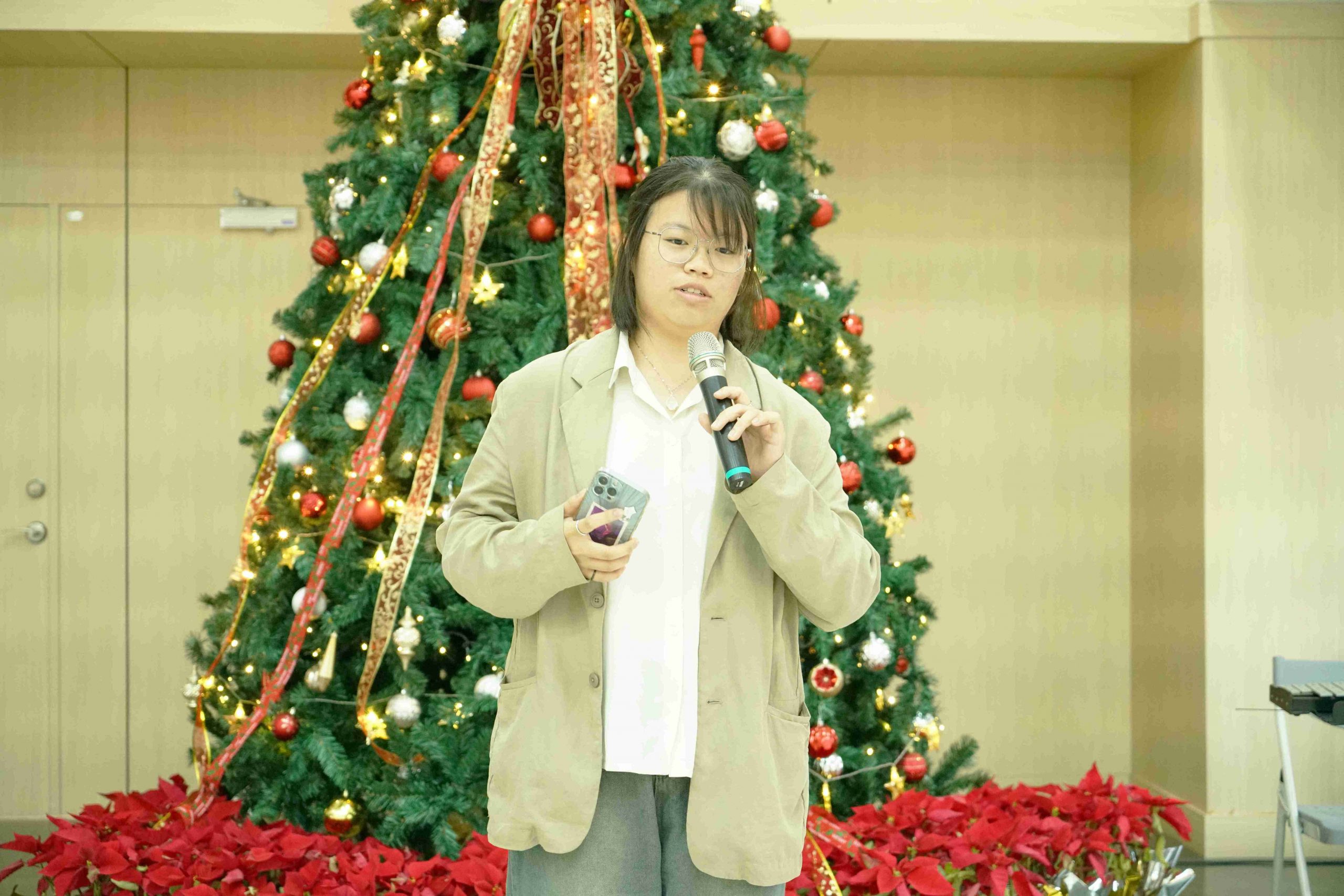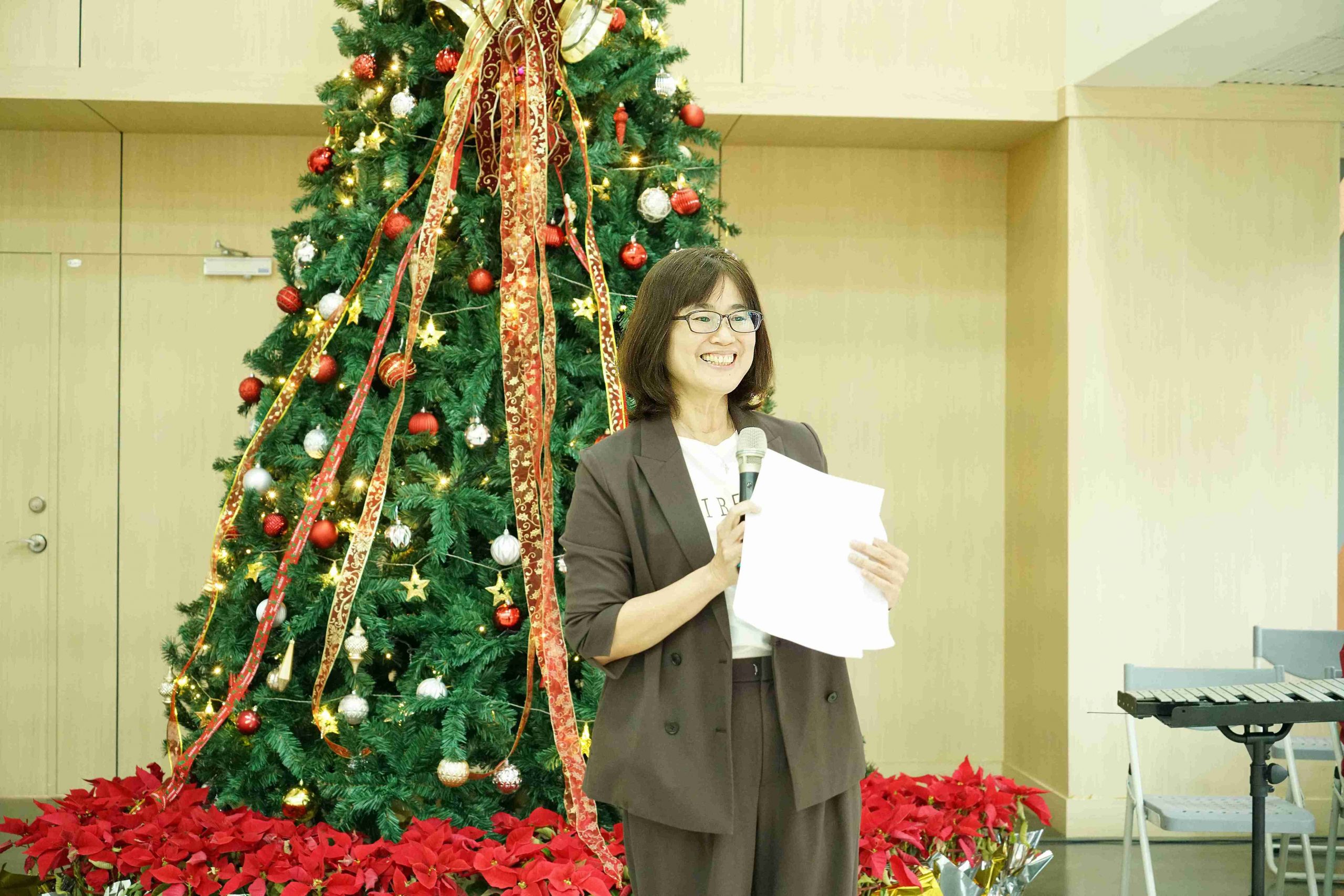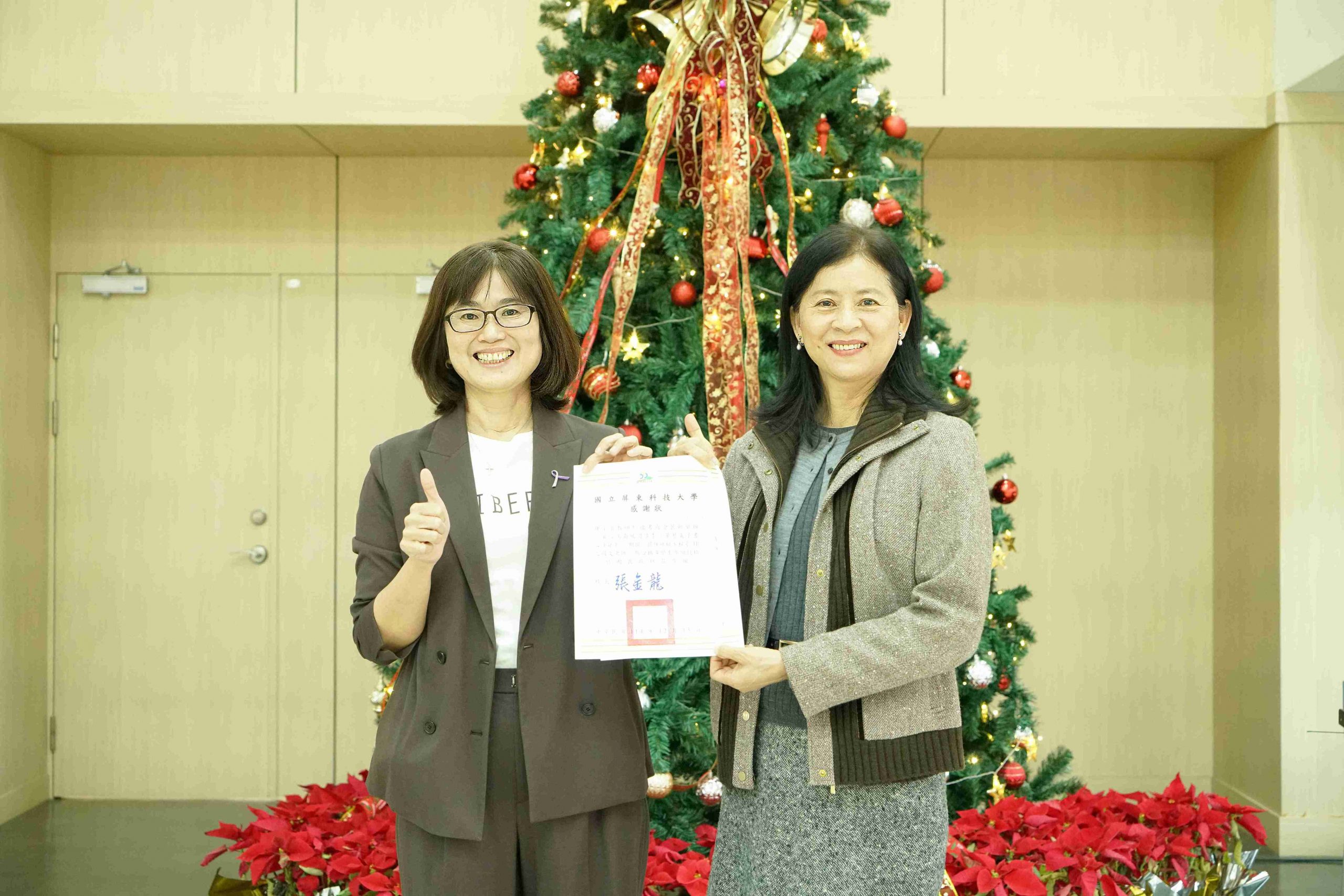 點燈儀式由圖書與會展館趙善如館長主持,在歡快的氣氛中點亮璀璨的耶誕樹。也邀請師長來賓到場共襄盛舉,包括教務處林鉉凱副教務長、通識教育中心傅含章副教授、語言中心鍾宇翡副教授,以及長期支持本活動的華藝數位股份有限公司業務部林威凱經理等,也都到場共襄盛舉。
