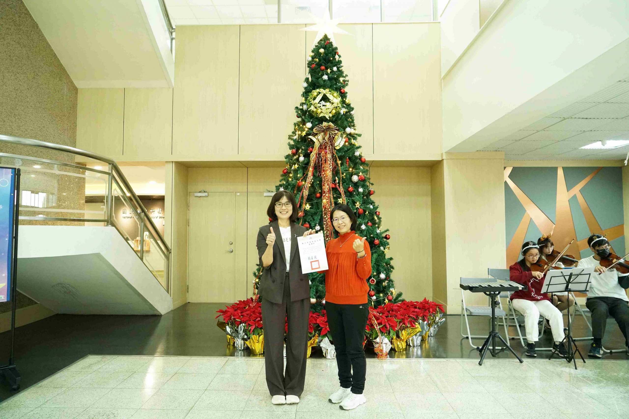 本屆首獎由生物科技系1A黃品瑄同學獲得,典禮也特別邀請黃同學的授課老師鍾宇翡副教授到場並致贈感謝狀,肯定老師對學生閱讀寫作的啟發。本校弦樂社也帶來典雅歡快的現場伴奏,為頒獎活動營造出溫馨藝術氛圍。