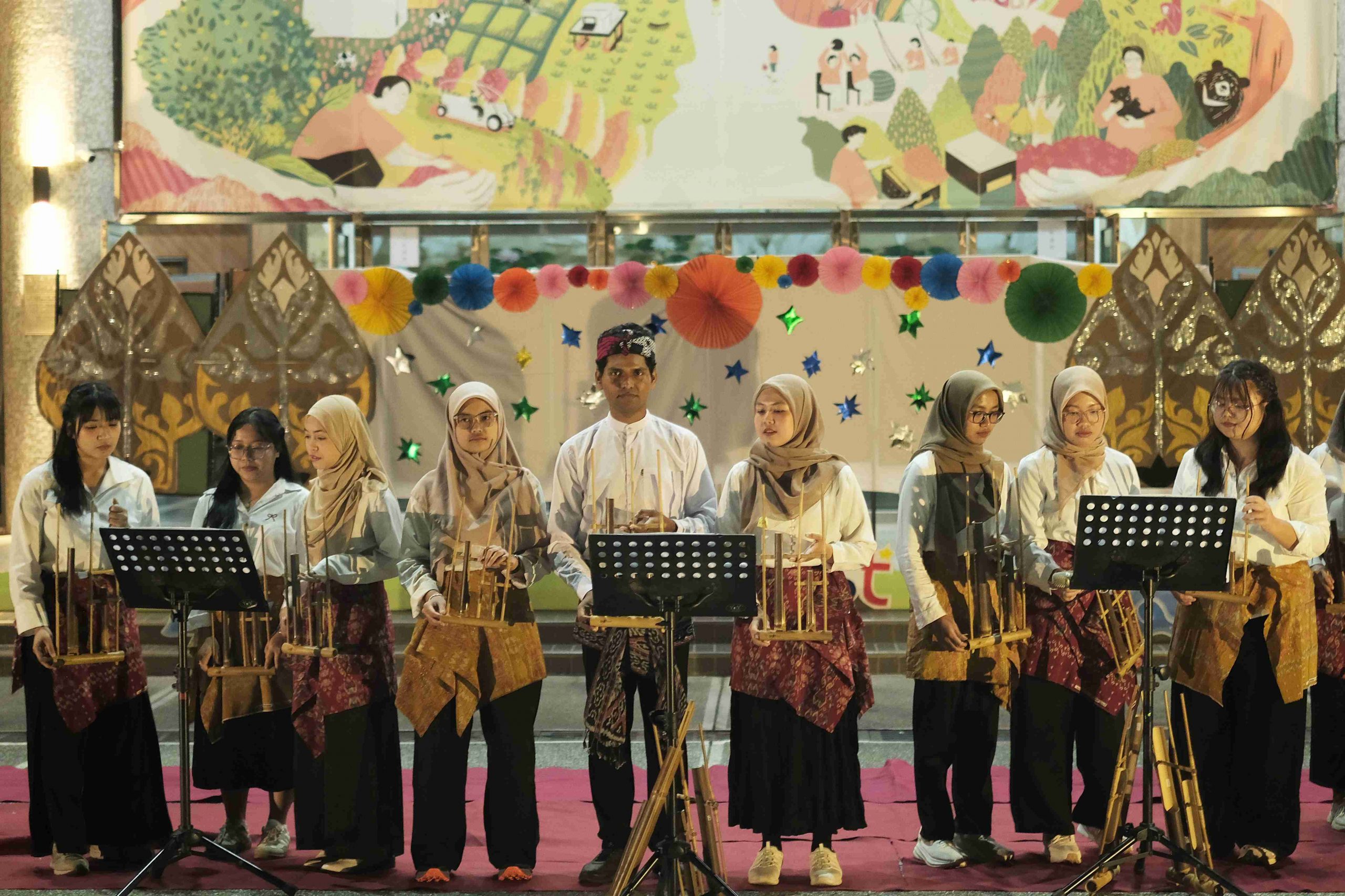 隨後進入正式典禮與表演節目,由安格隆樂團演奏〈Tanah Airku〉等印尼歌曲開場,巧妙融入華語歌曲,展現文化交流的融合精神;接續則有印尼傳統武術Silat,以及象徵峇里島文化的Kecak火舞登場。Kecak舞蹈源自峇里島,結合宗教、象徵與戲劇元素,演繹《羅摩衍那》史詩中羅摩王子在哈努曼與猴軍協助下,營救妻子悉多對抗羅波那的經典橋段,表演張力十足,深獲觀眾讚賞;活動最後以融合現代音樂與舞蹈的印尼當代舞作為壓軸,為文化節畫下熱情洋溢的句點。