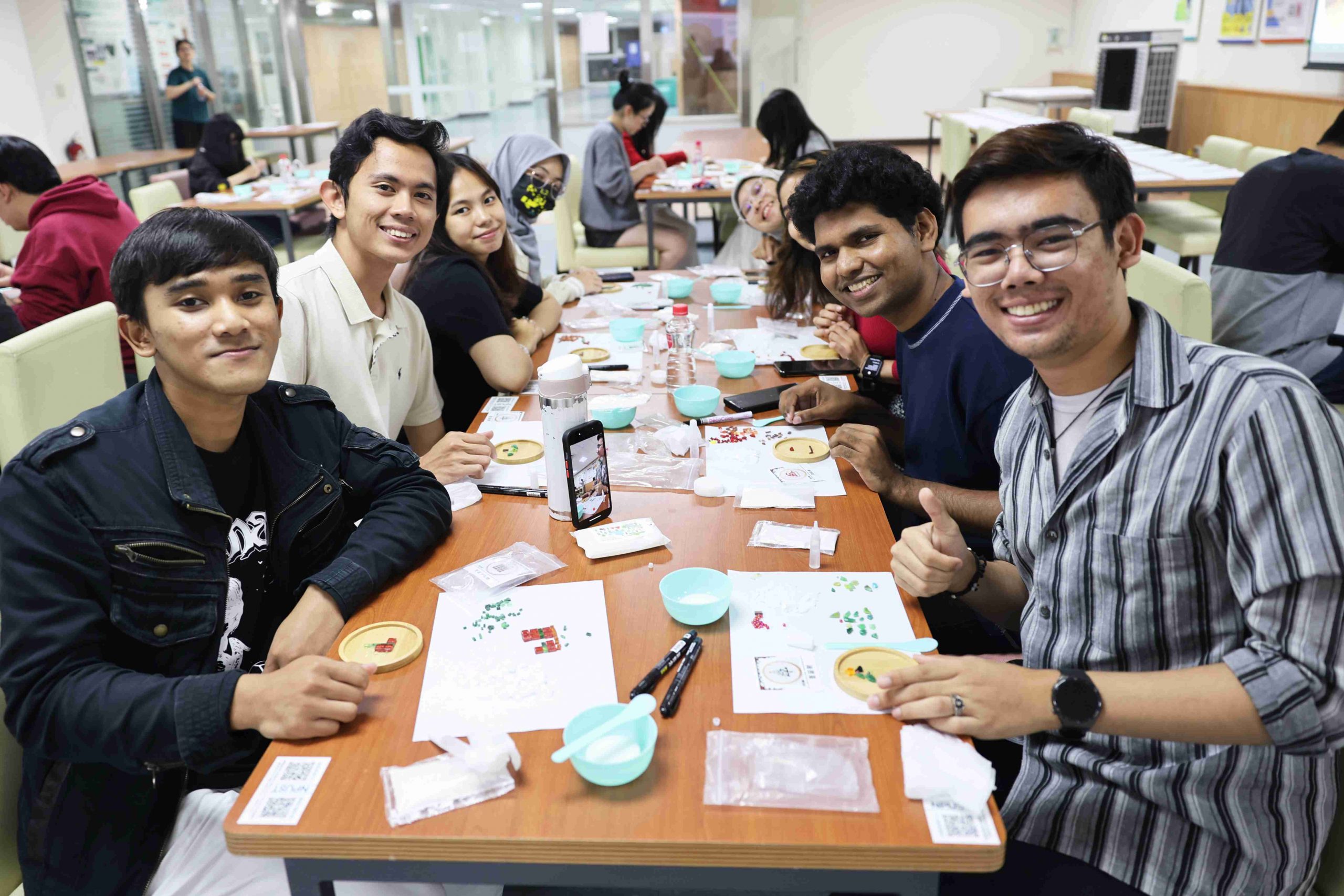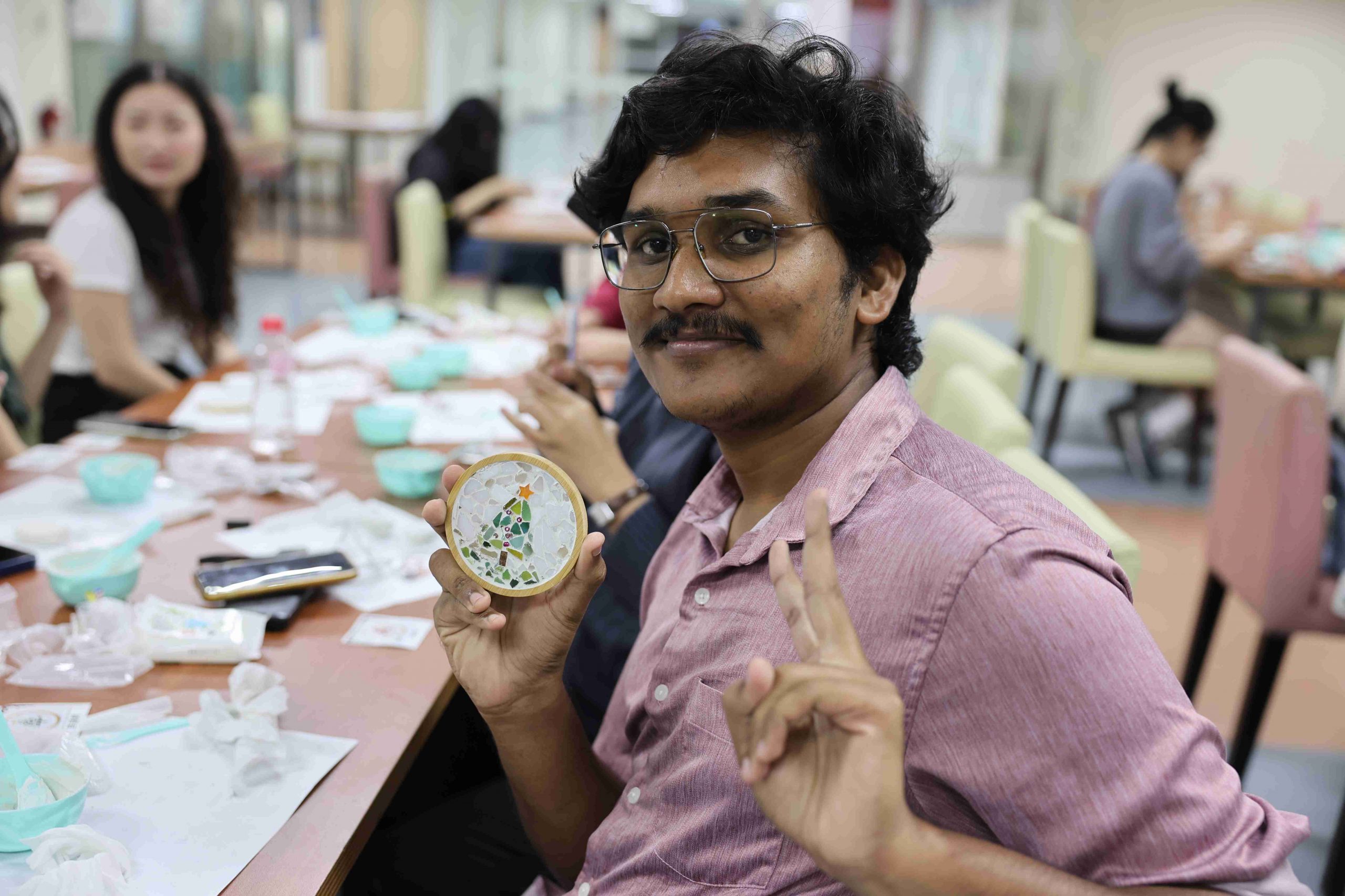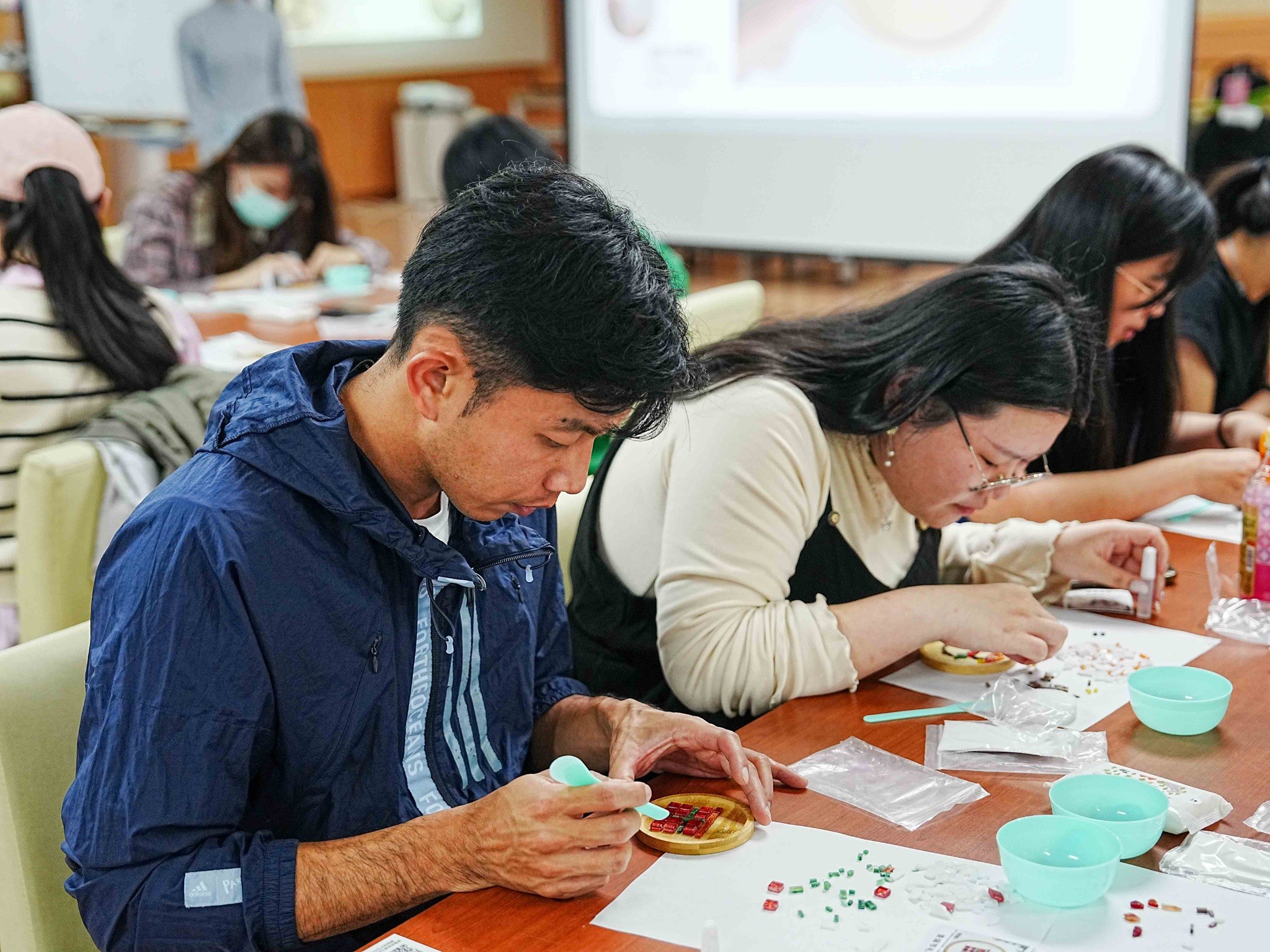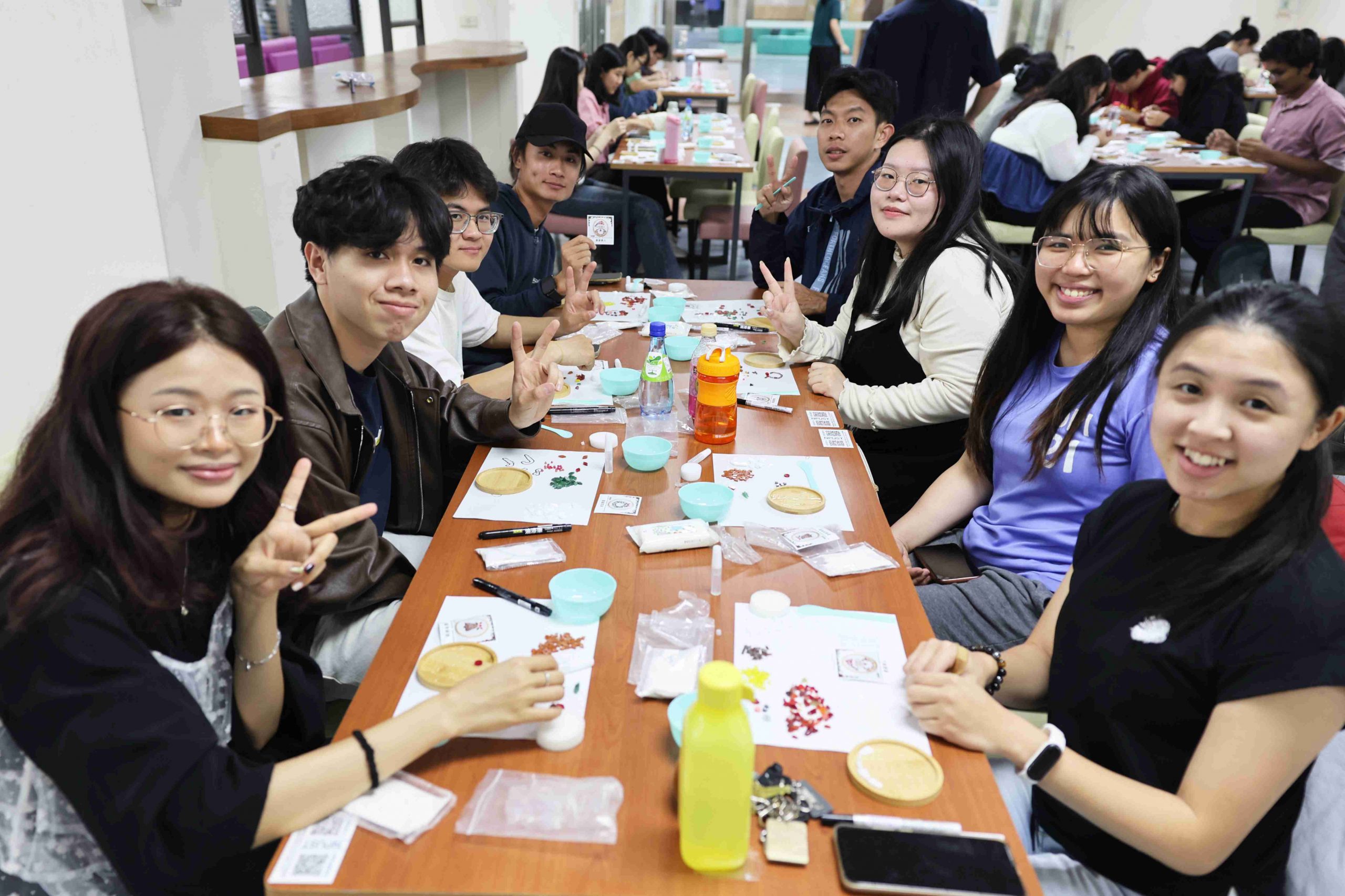 本校國際事務處為讓來自不同國家的學生及教職員們迎接耶誕佳節,於上(12)月下旬舉辦別具巧思的耶誕 DIY 活動,邀請臺灣、馬來西亞、印尼、印度、泰國、越南、菲律賓、汶萊、聖露西亞、海地、聖文森及格瑞那丁等不同國家背景的教職員生共計80人參與馬賽克杯墊製作,在動手創作的過程中相互傳遞祝福與溫暖。