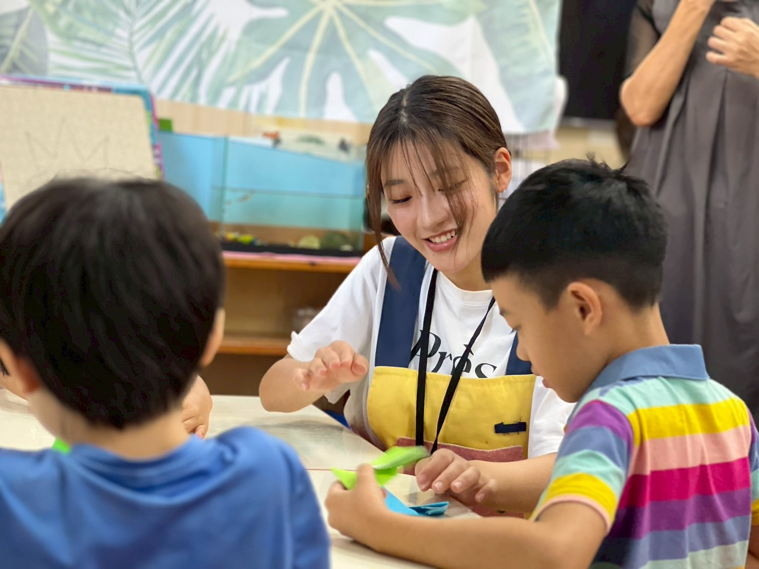 該次課程以本校幼兒保育系為核心,安排多元且具實務導向的訓練內容,日本師生除參訪教學設施外,亦實際參與嬰幼兒照護技能訓練,包括「嬰兒心肺復甦術」、「為嬰兒泡奶水」、「為嬰兒清潔口腔及洗澡」以及「教導兩歲幼兒如廁」等,透過實作深化專業知能,提升照護應用能力。另外,師生亦走入本校附設幼兒園,與孩童一同進行日本摺紙活動,在互動中促進跨文化交流與教學經驗分享。