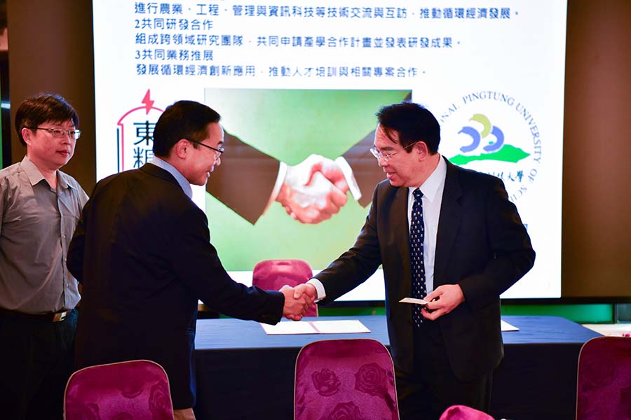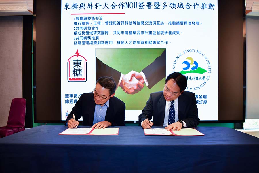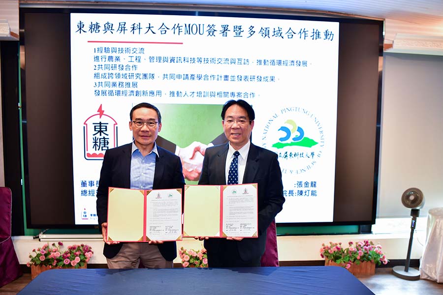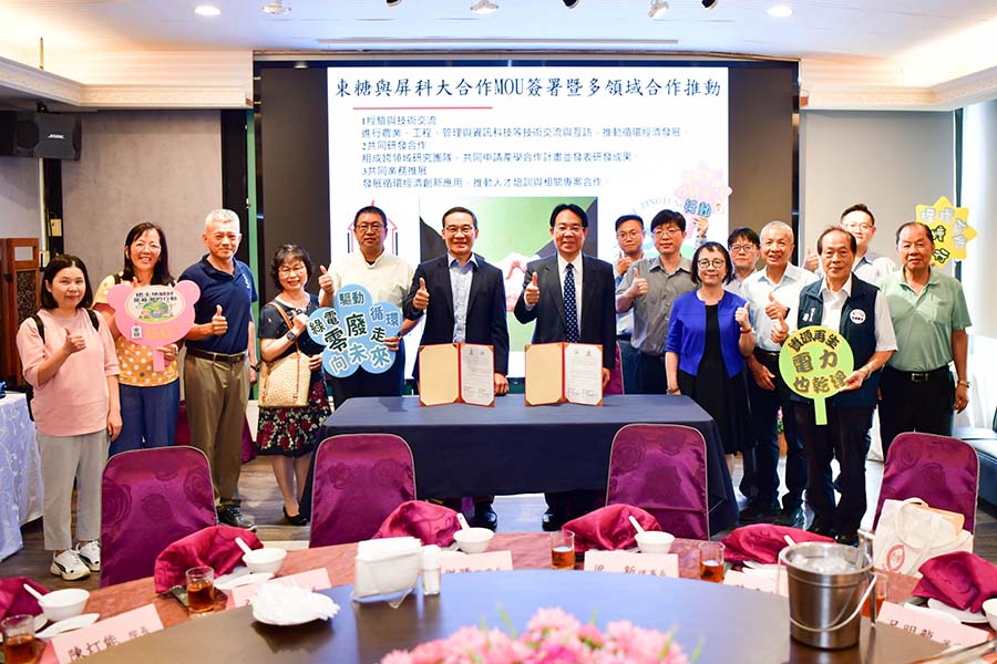 國立屏東科技大學與東糖能源服務股份有限公司為響應全球淨零碳排趨勢並深化在地綠色能源發展,由屏科大校長張金龍與東糖能源董事長侯傑騰代表共同簽署策略聯盟備忘錄。未來將整合學術界的研發能量與產業界的實務資源,聚焦「循環經濟」展開深度產學合作,期望能為臺灣的永續發展與綠能產業培育更多專業人才。